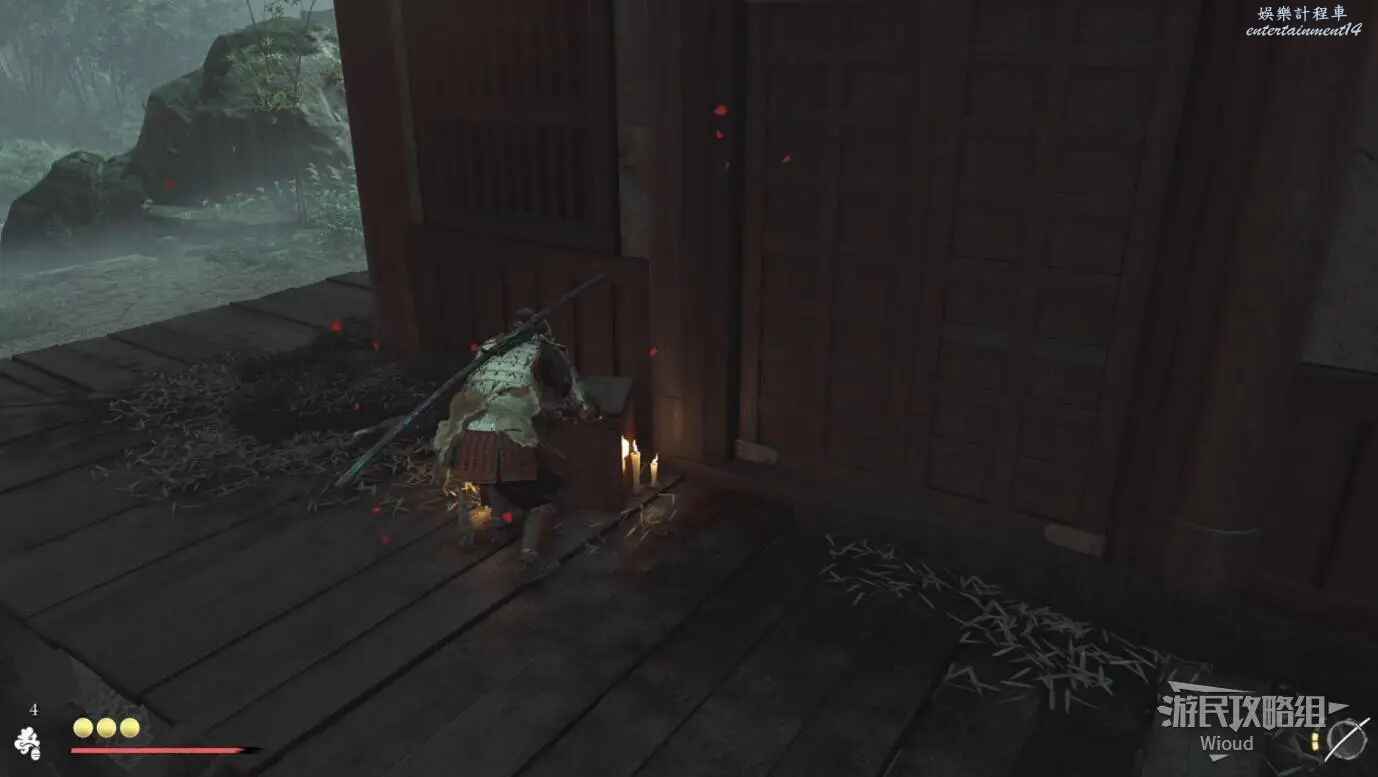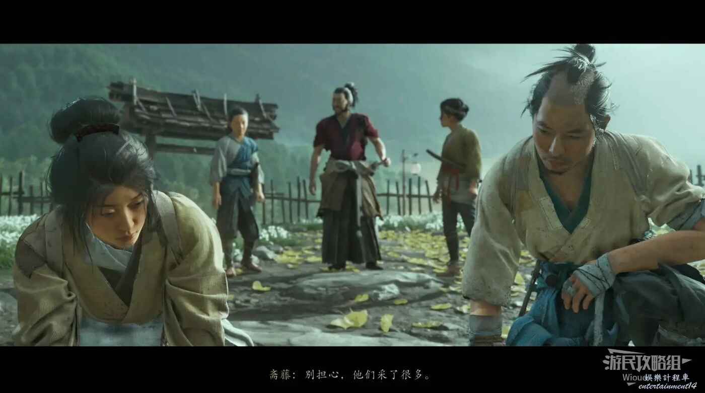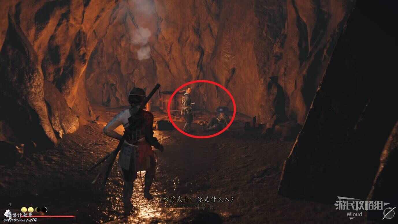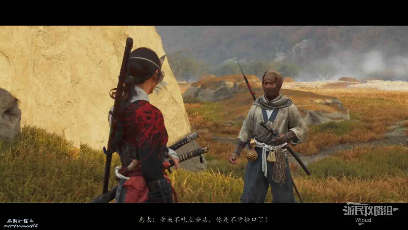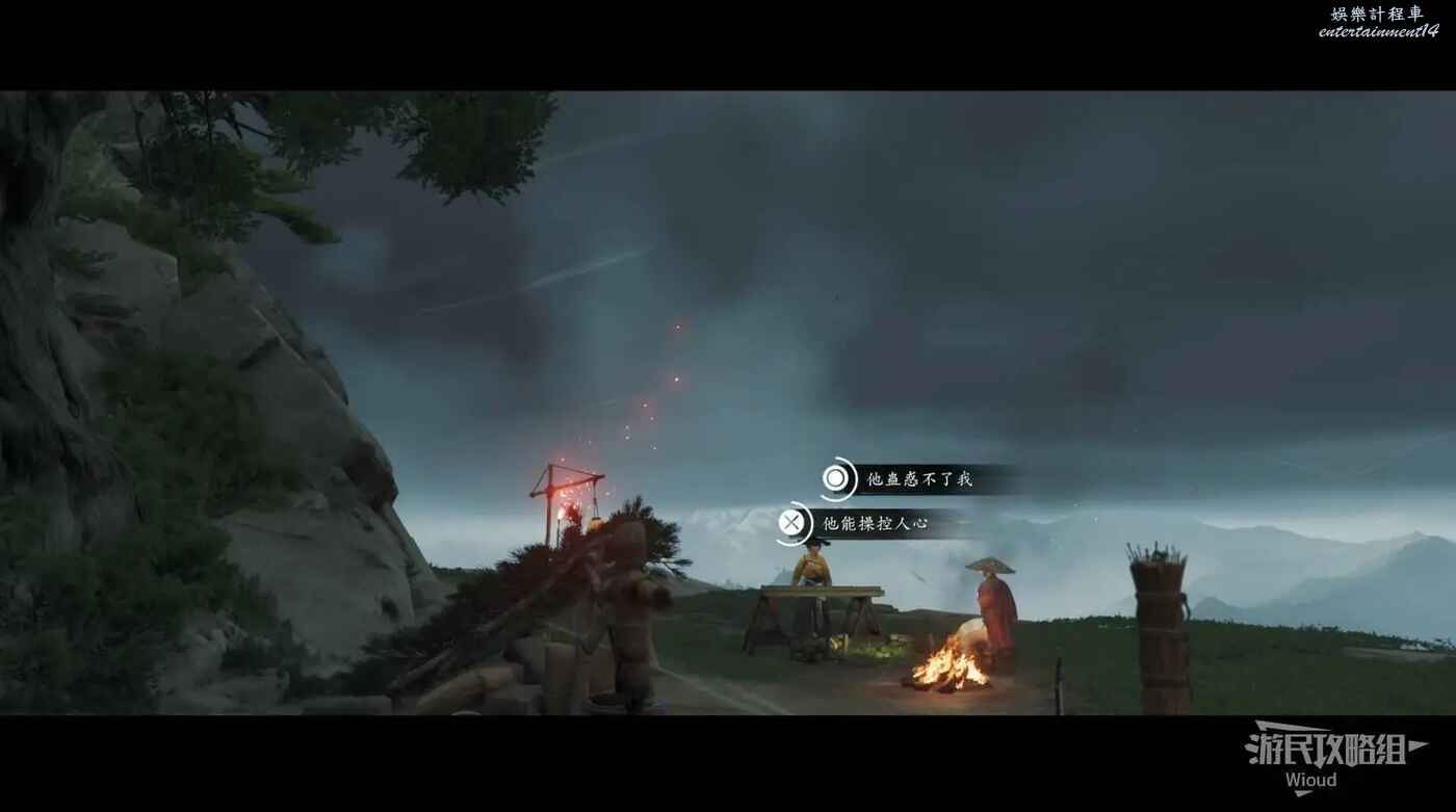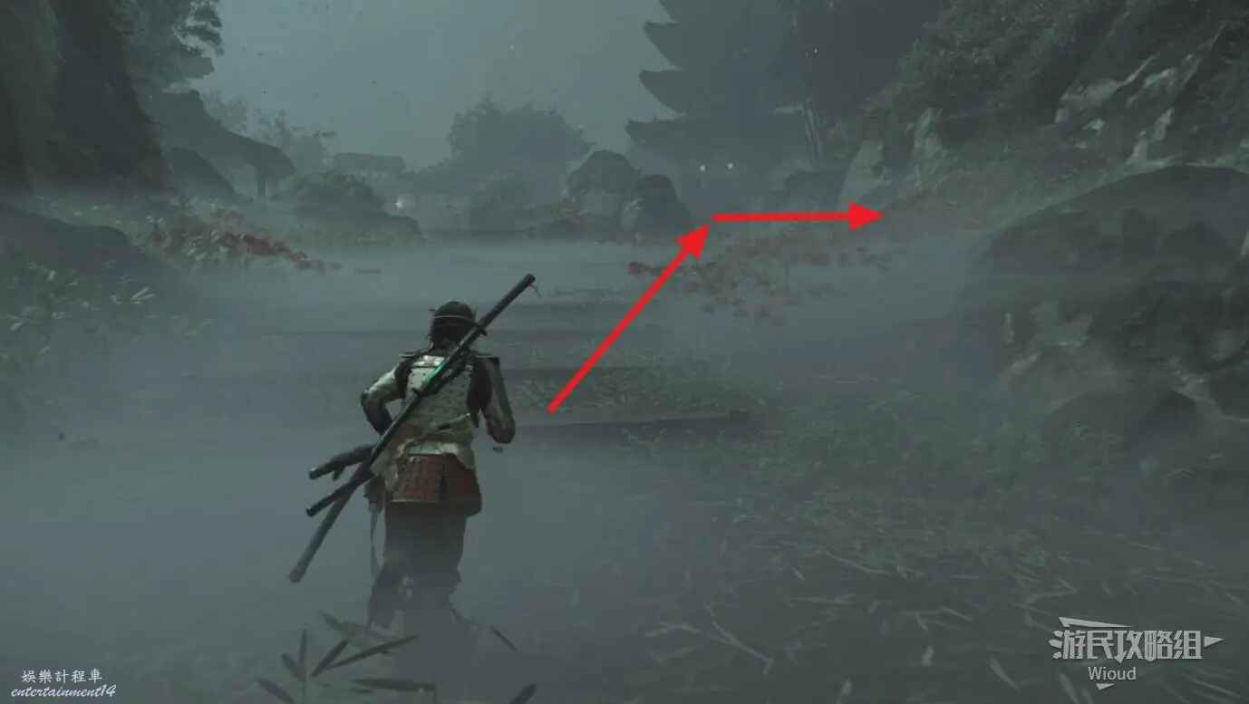 將敵人全幹掉,過完劇情點燃旁邊篝火,然後爬到後面和大治郎互動。