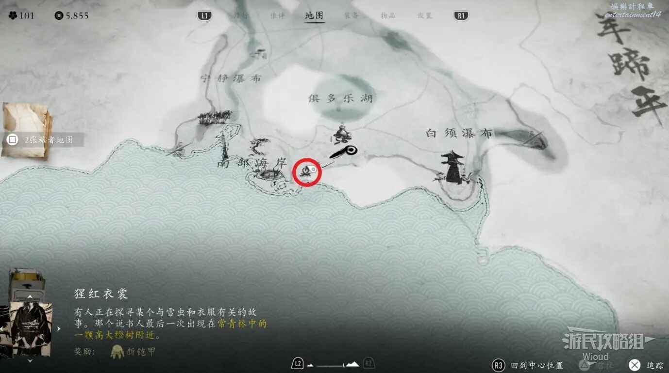 該任務的接取位置在【羊蹄草原】下方區域【南部海岸】右上方的一個營地裡。