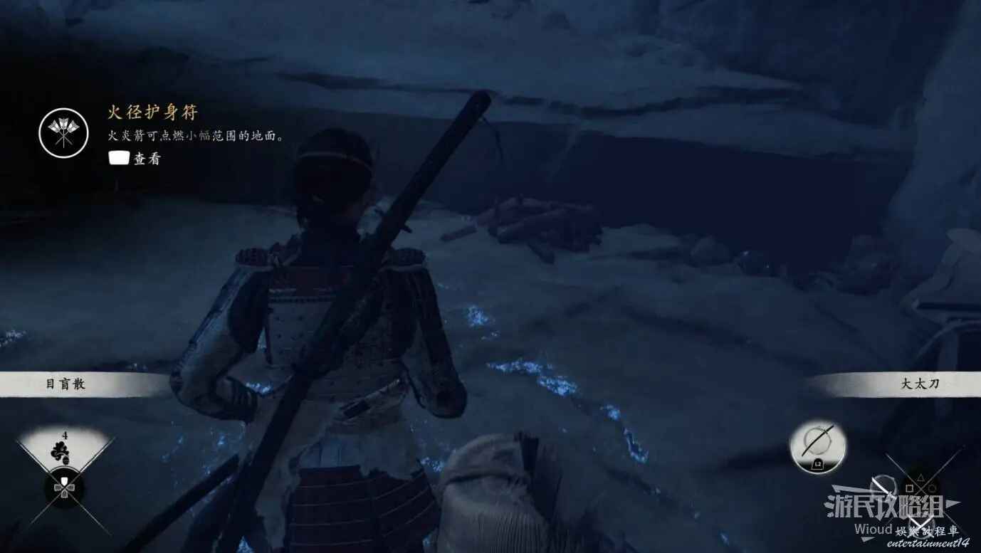 然後跟著NPC移動到旁邊的洞口前,爬樓梯下去開盡頭箱子獲得【火徑護身符】。