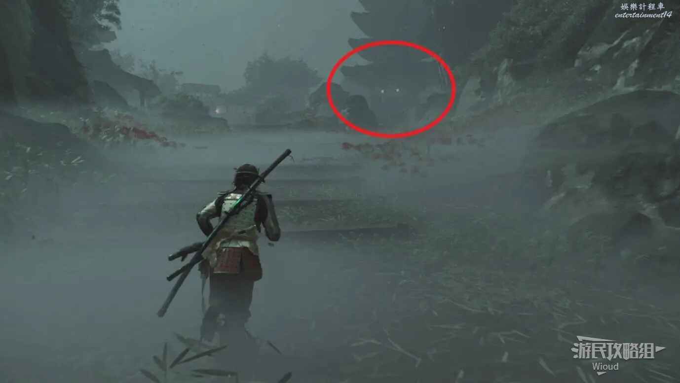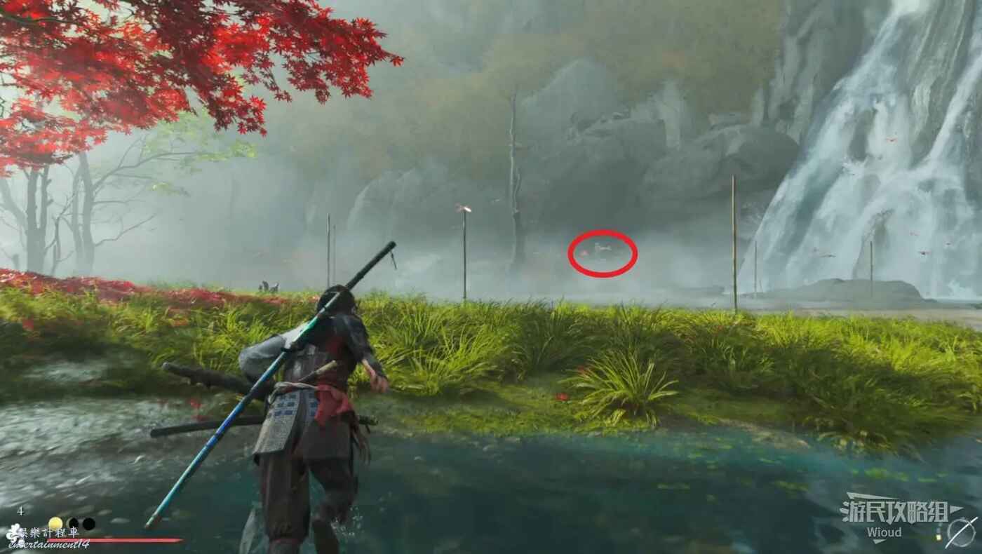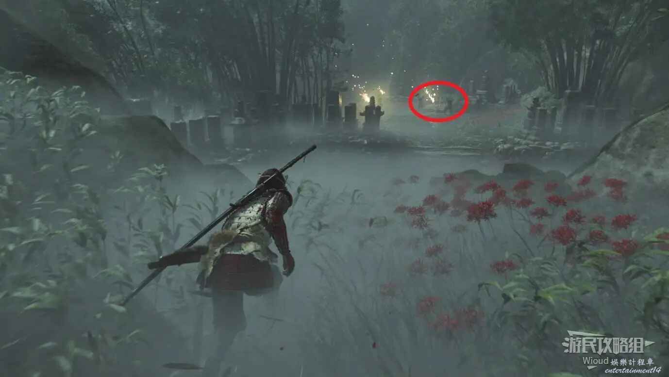敵人就在樹下等著,靠近觸發戰鬥,將其擊敗獲得【武藏之頑抗護身符】。