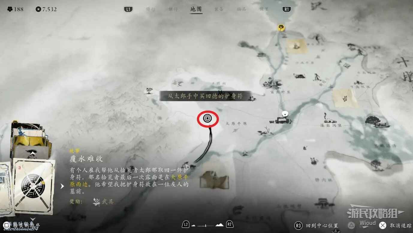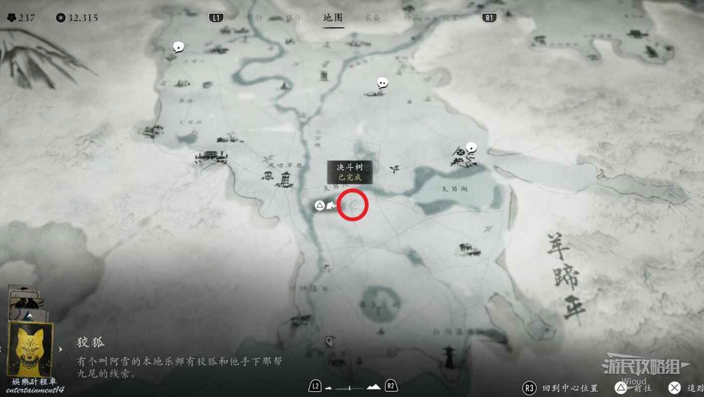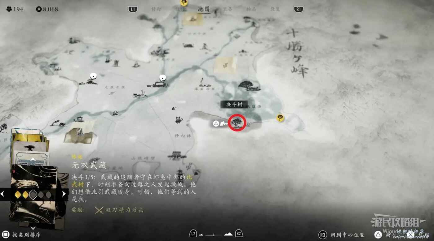 敵人就在樹下等著,靠近觸發戰鬥,將其擊敗獲得【武藏之頑抗護身符】。