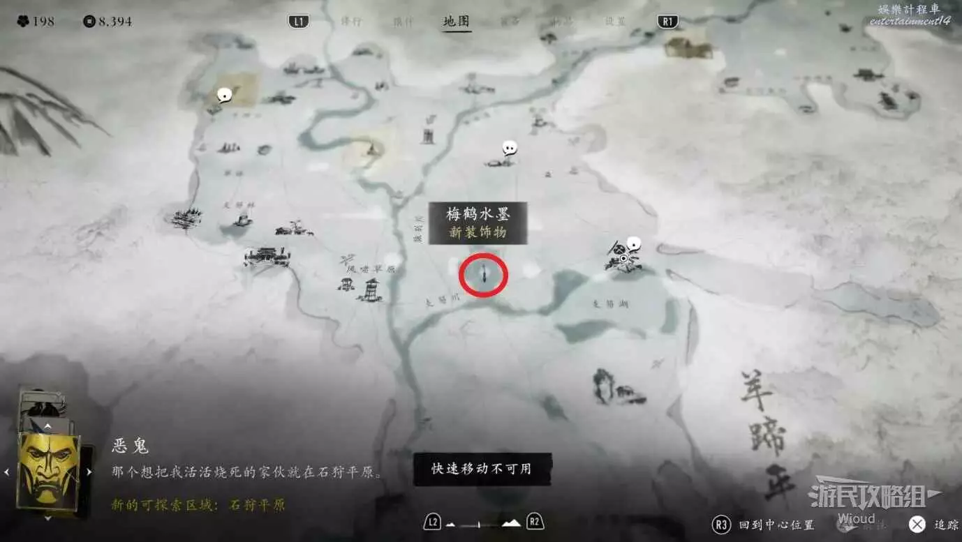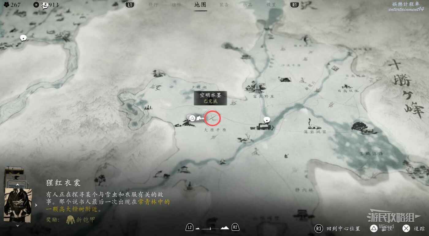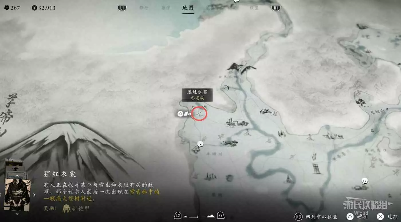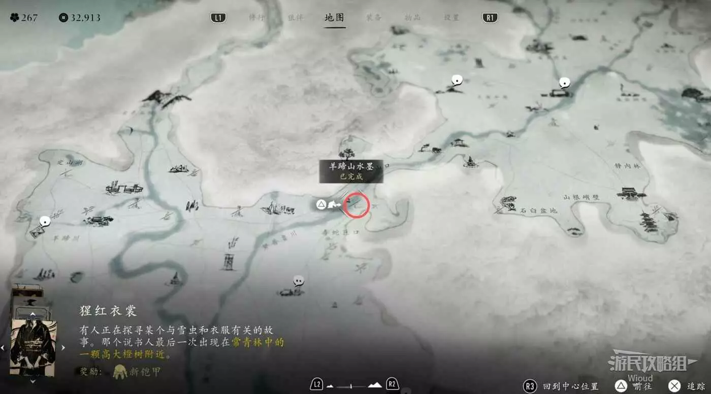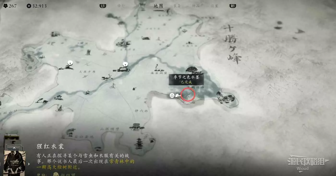 位置在【中古穀瀑布】右側的水墨處,因為我們之前在集市已經解鎖了所有水墨的位置。