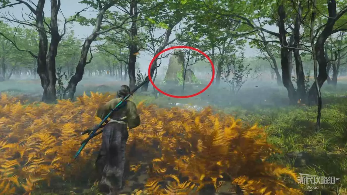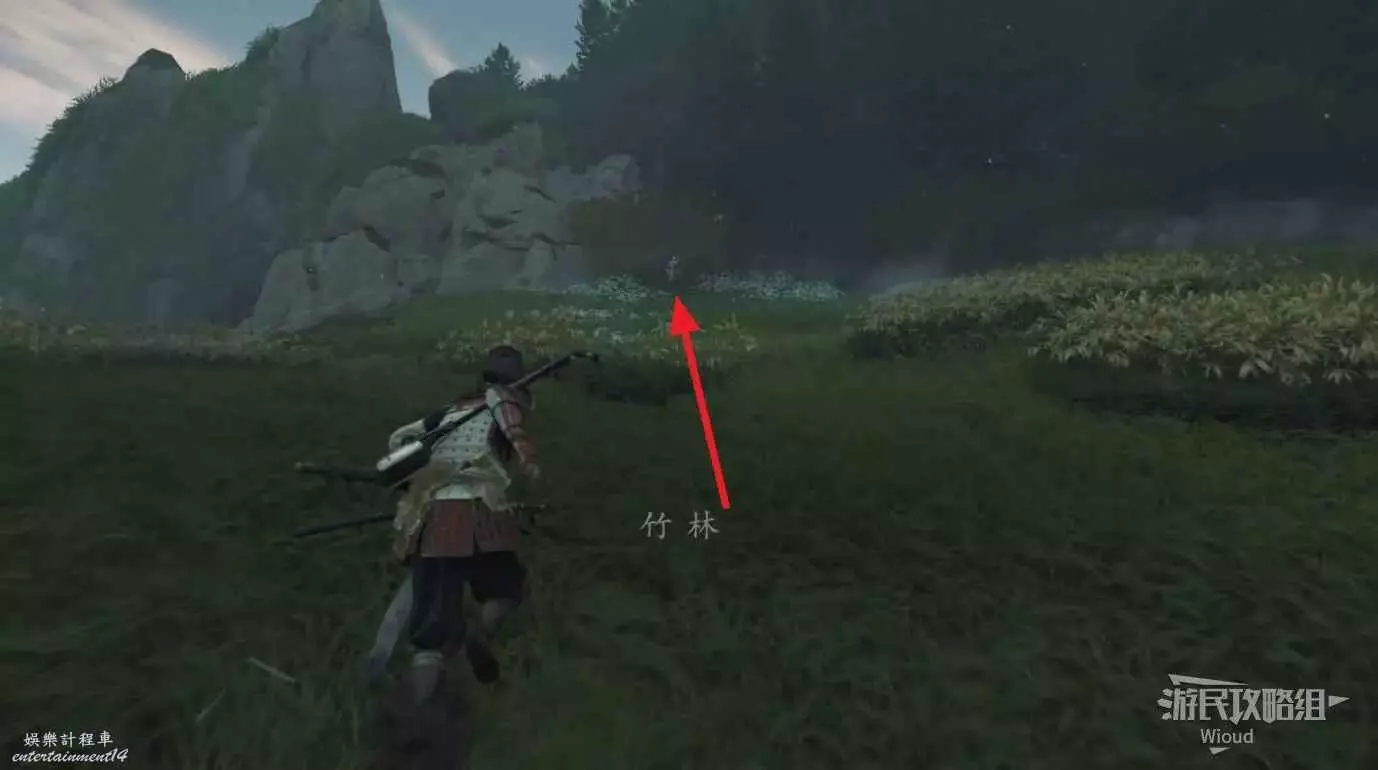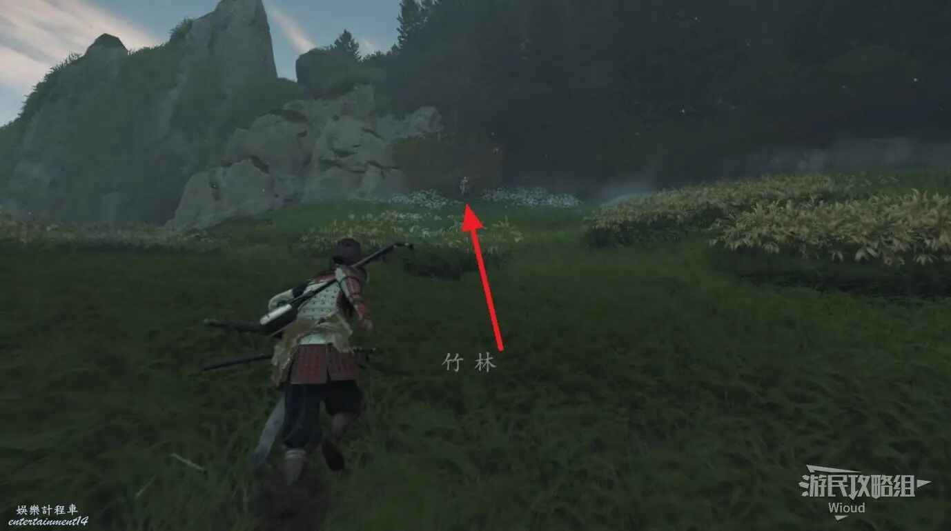來到目的地,會發現右側有個守護竹林的敵人,把他幹掉然後用武器砍掉擋路的竹子往裡走。