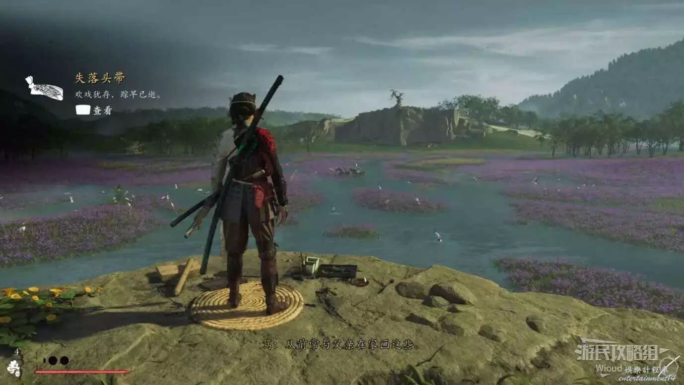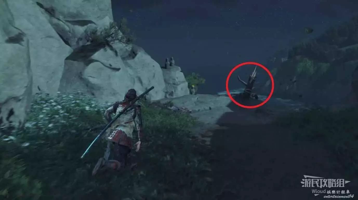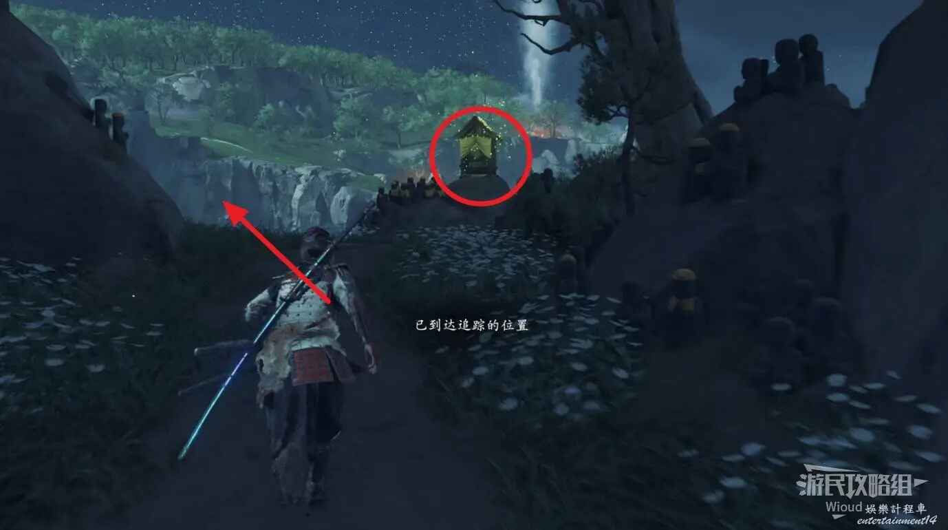 來到目的地,會發現右側有個守護竹林的敵人,把他幹掉然後用武器砍掉擋路的竹子往裡走。