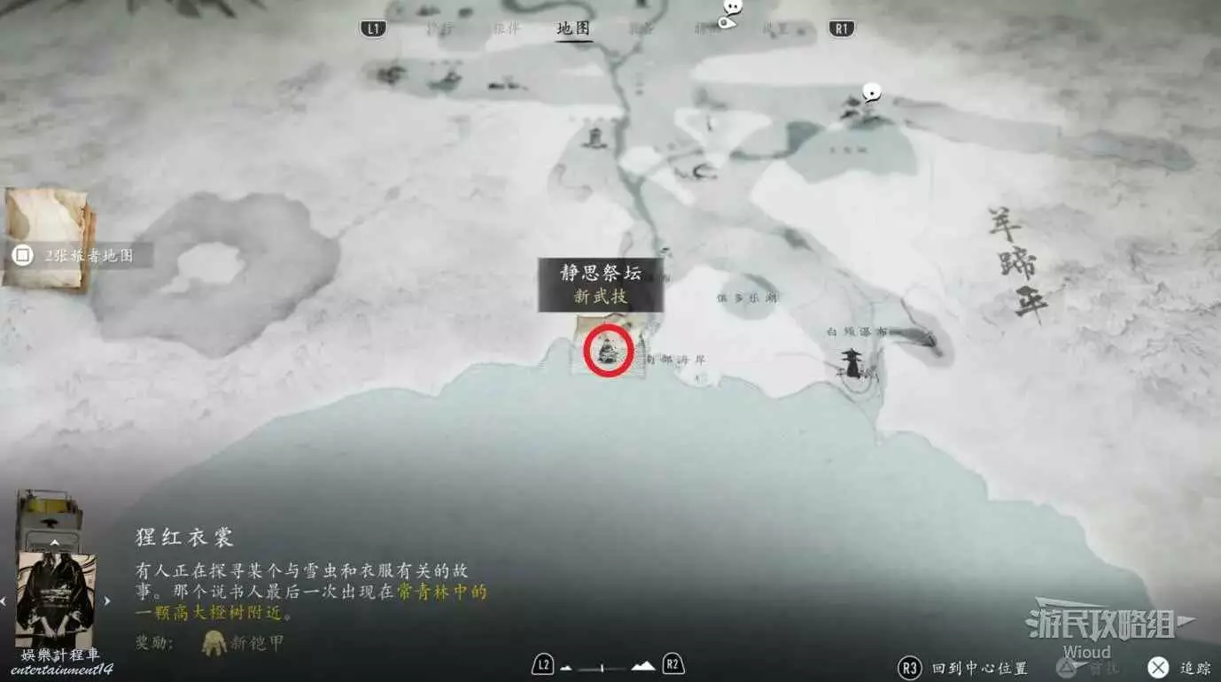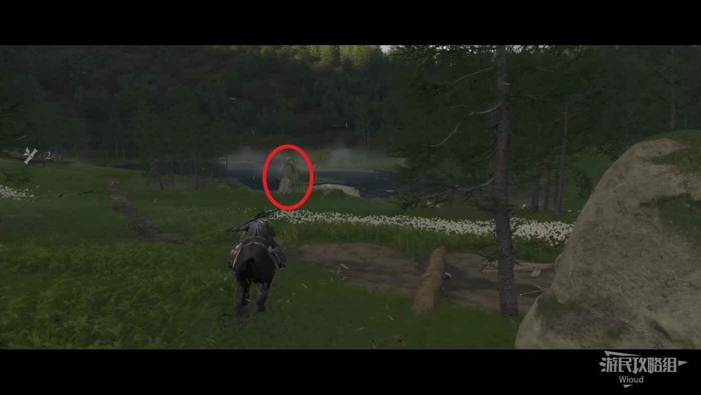 到目的地,可以在定山湖旁邊直接找到水墨的石頭,完成互動可獲得服裝【少年斗笠】。