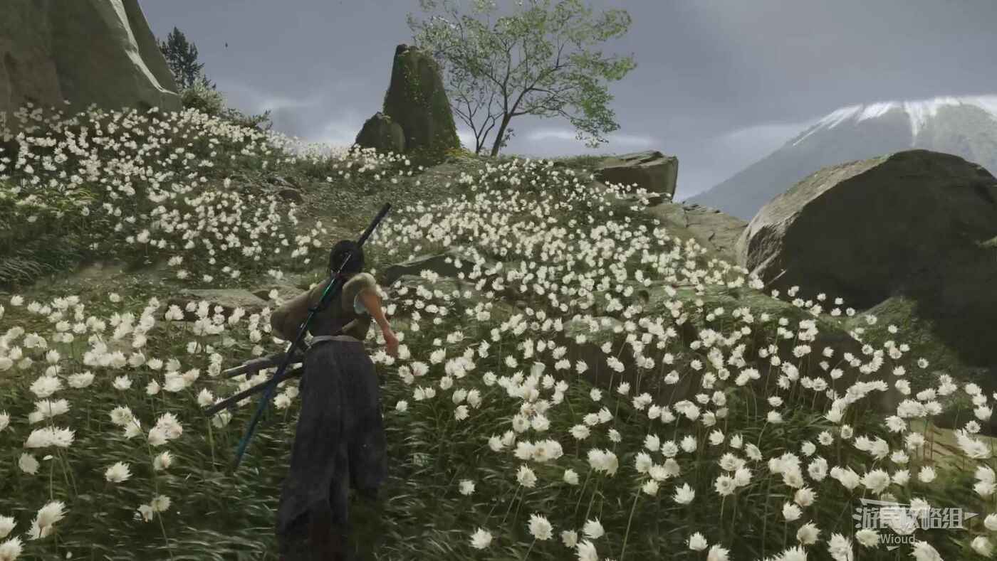 到達目的地能直接看到水墨的石頭,互動可獲得【四時頭帶】。