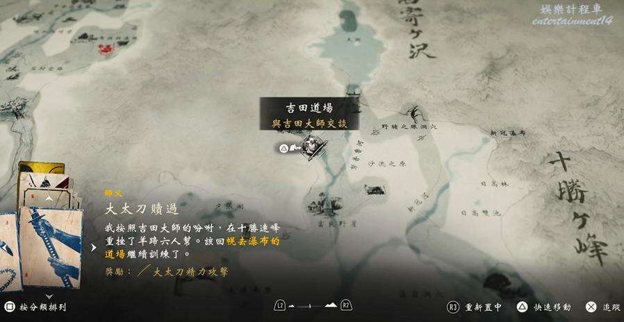 完成大太刀之路,傳送到道場和吉田對話,限時選項選啥都行,隨後跟著他進屋看三幅畫。
