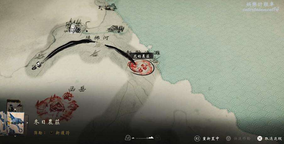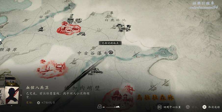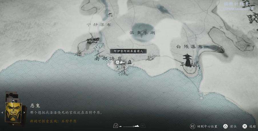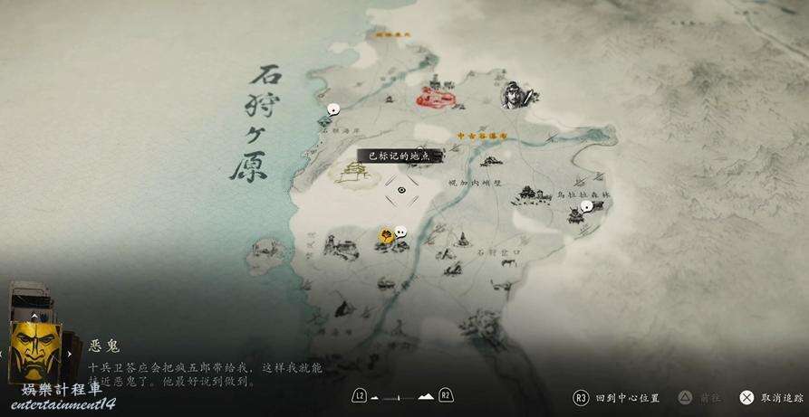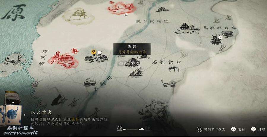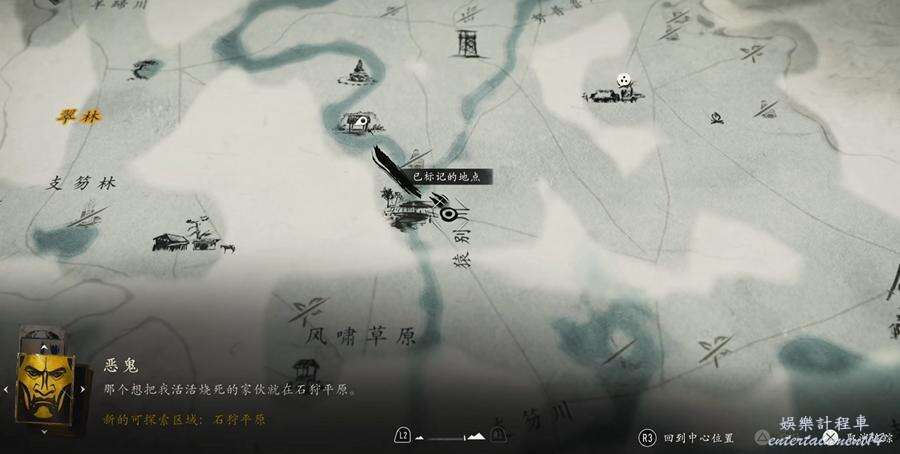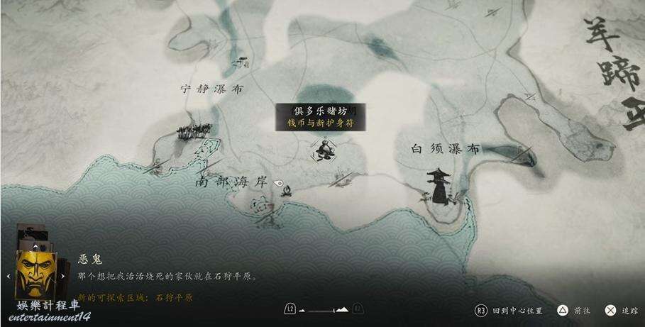 位置如下圖所示,因為此時我們已經完成了槍之怒的所有目標,前往【石狩平原】區域右上角的白鹿營地。