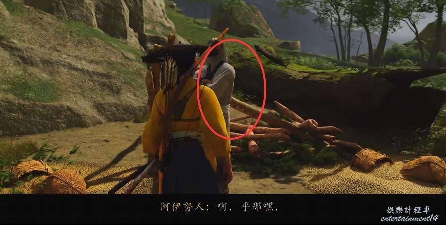 移動到地圖標點,目標在旁邊的一個小山上,沿著下面的攀附節點上去和他對話。
