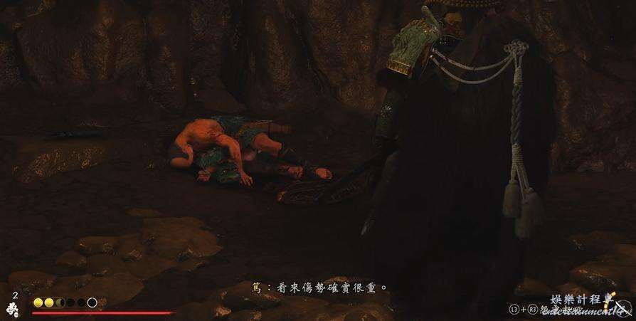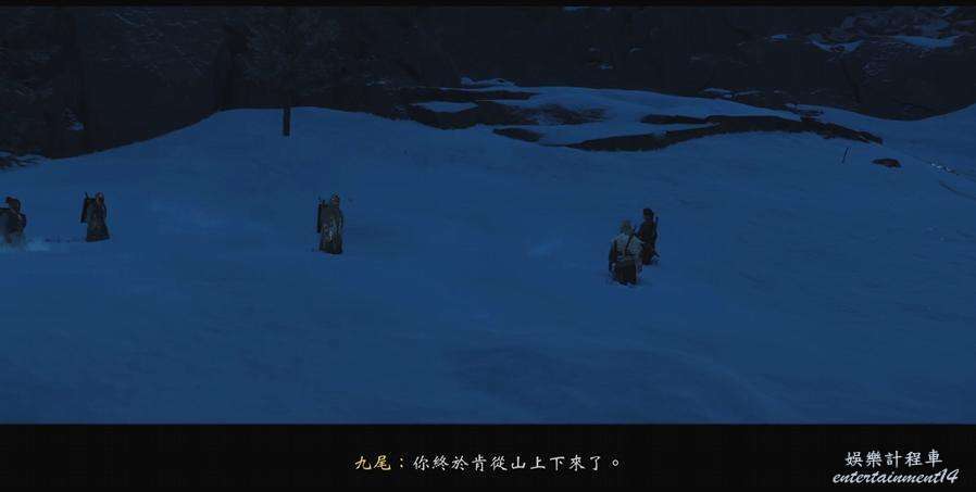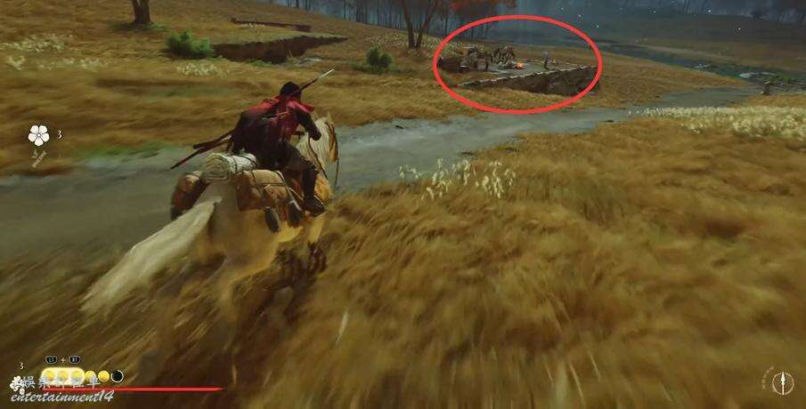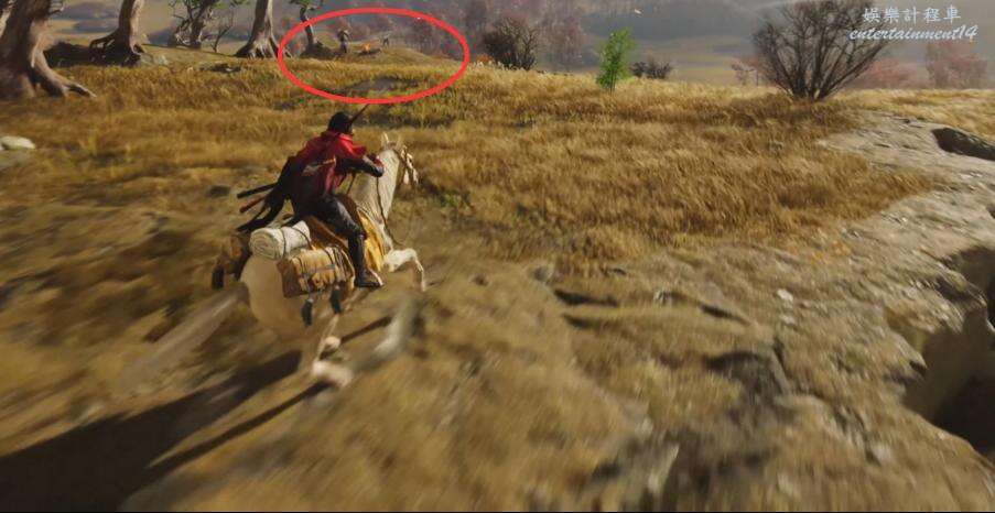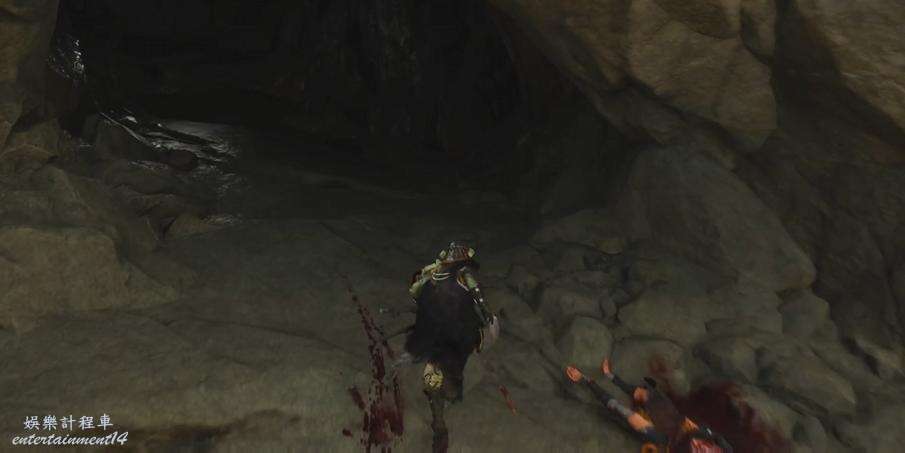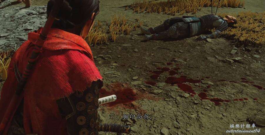 移動到地圖指引點,和馬匹屍體互動再和被綁住的人互動,朝旁邊的下坡滑下去,跟著血跡找到遠處戰鬥的士兵。
