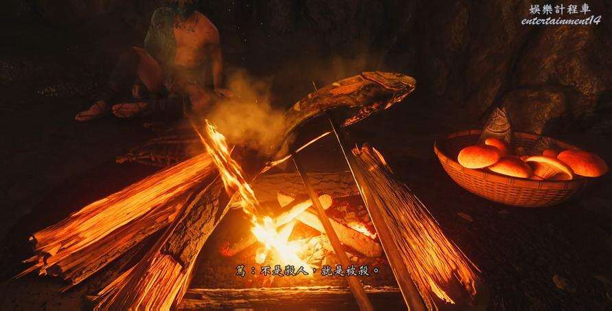 跟著夏本師傅學會技能,然後就行跟夏本師傅走到篝火旁,點燃篝火過劇情。