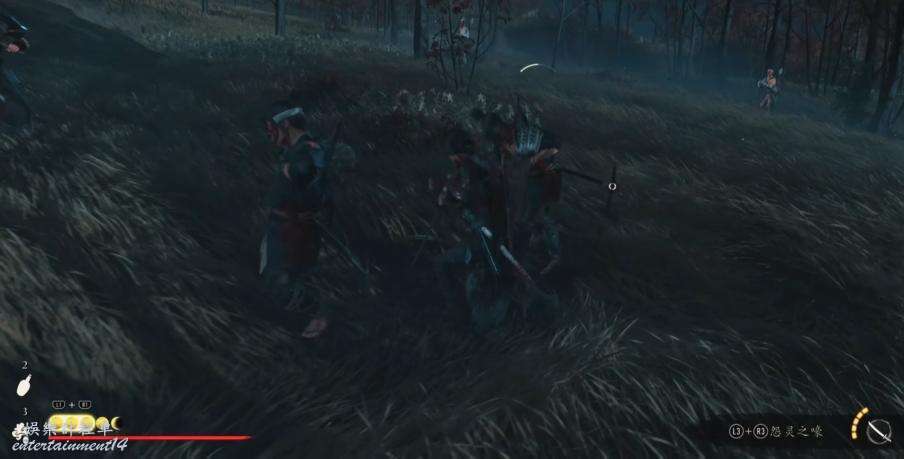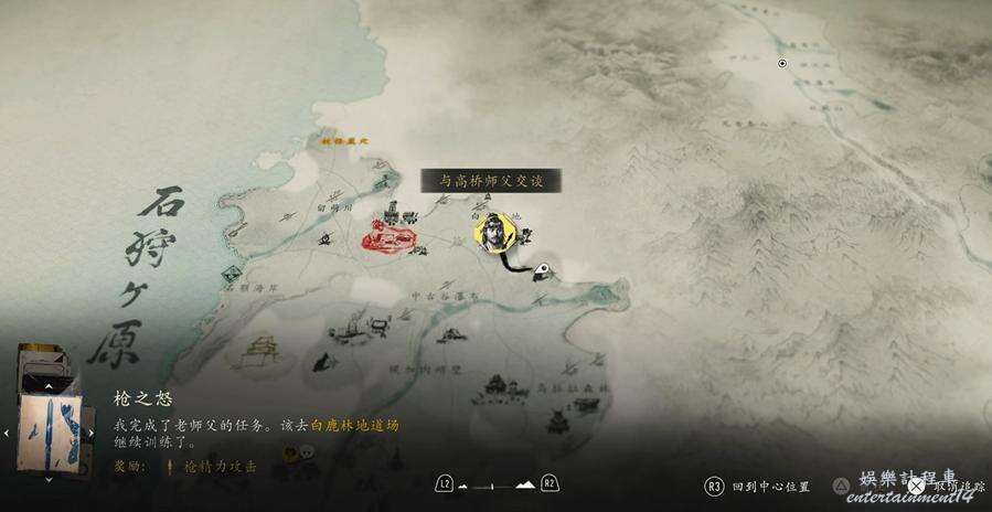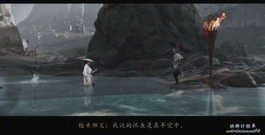 走到小島往裡看,拾取房屋前面插在地上的長槍觸發劇情,和突然出現的長槍師傅戰鬥並取得勝利。