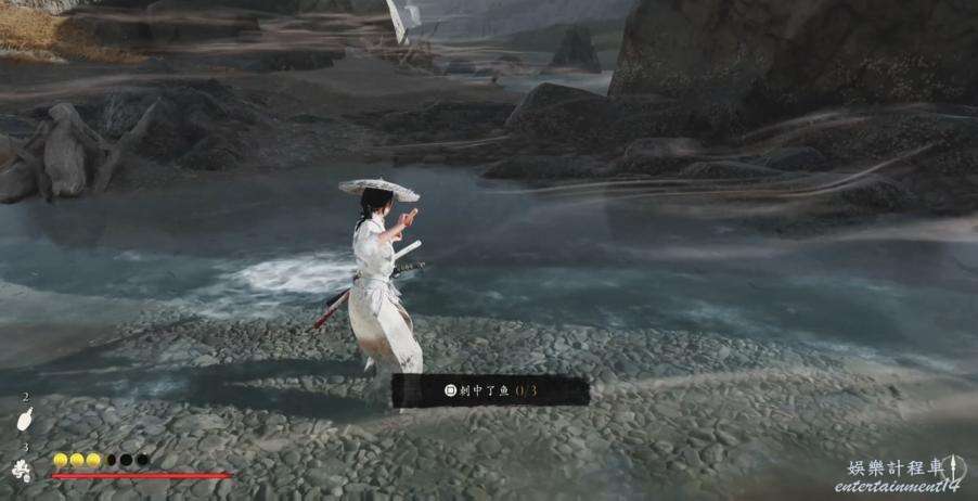 第一次刺魚只需要刺中一條就會觸發劇情,第二次過來會更好刺一點,刺到三條魚觸發劇情。