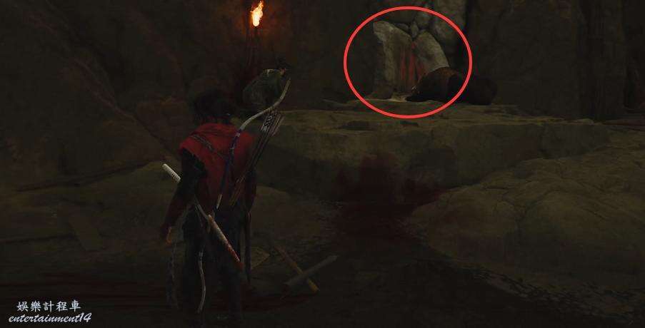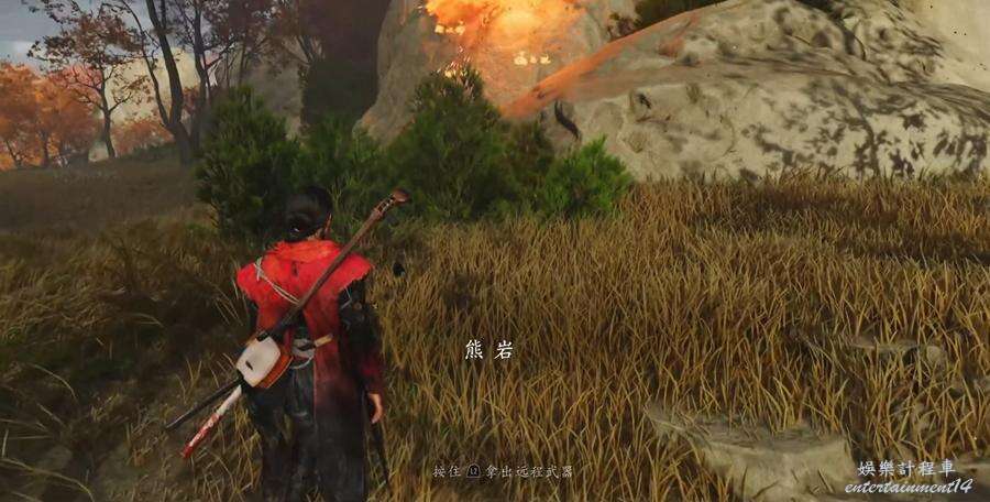 炸開熊旁邊帶有紅色木板的石塊,在裡面獲得新的武器【致盲彈】。