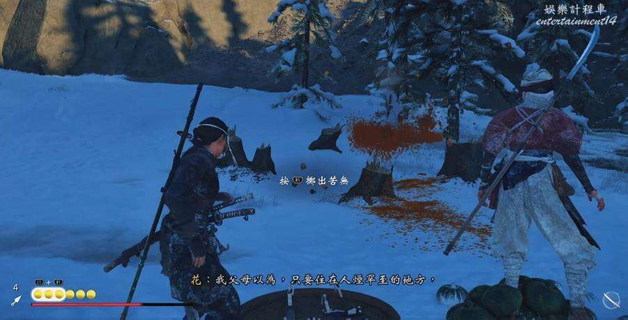 幹掉敵人,幫助被綁住的村名,和花擊敗第二波來襲的敵人。