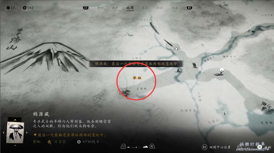 接取鴉源藏的懸賞任務,去翠林西部的墓地中找他。