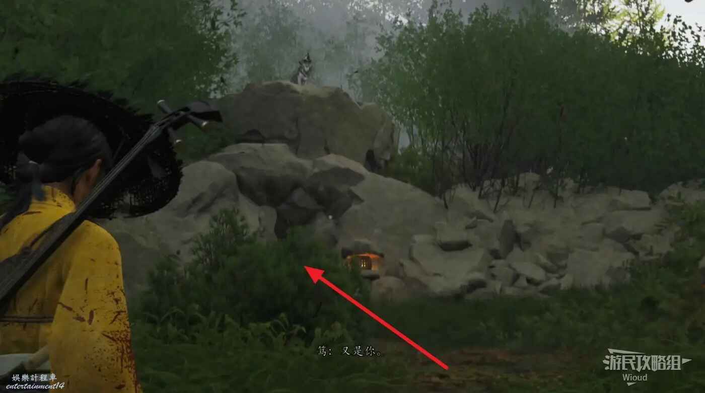 看到一個小屋後,繞到另一面進入小屋,和門口的刀鞘互動觸發劇情。