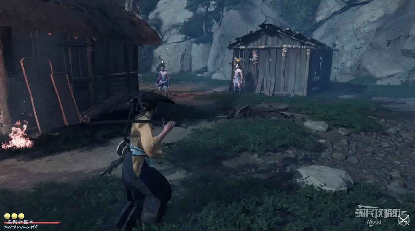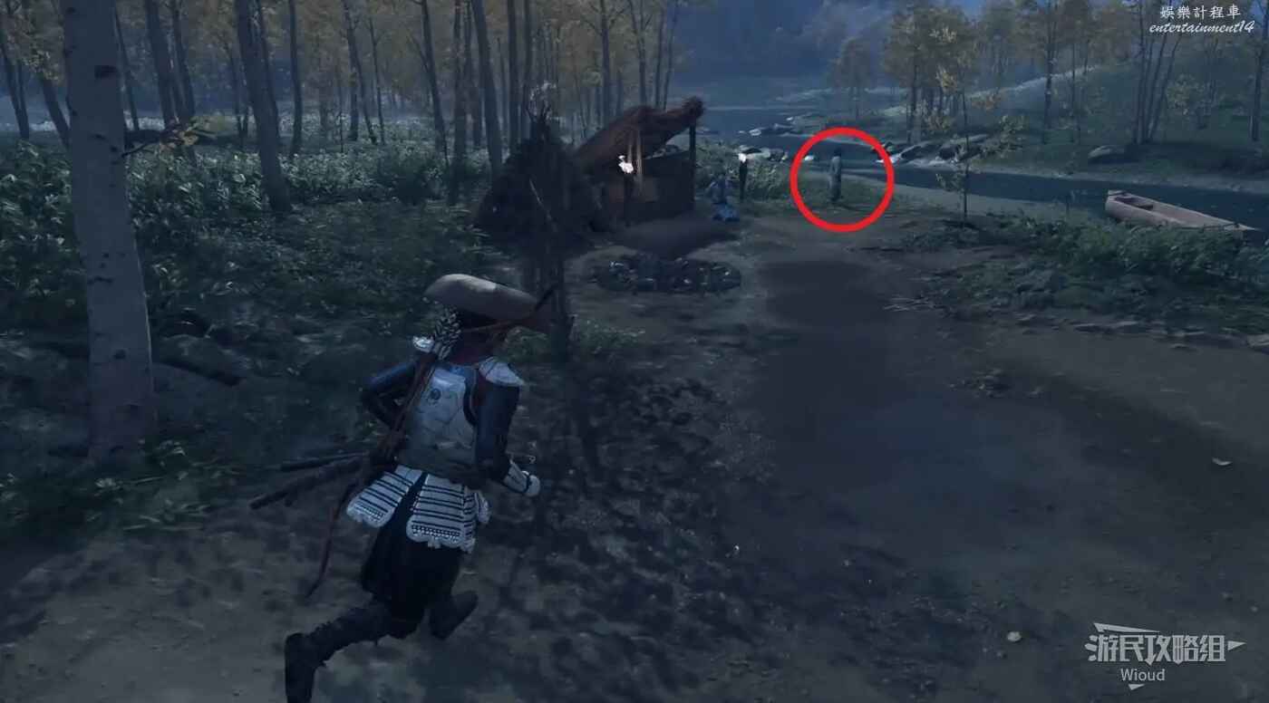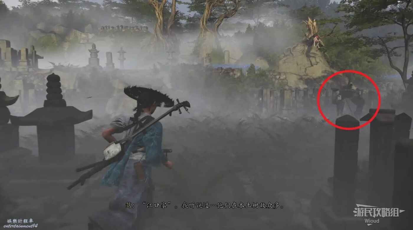 目的地沿著樓梯進入墓園,穿過一道門和右邊屍體互動,此時一個同樣接取懸賞的浪人進來和我們戰鬥。