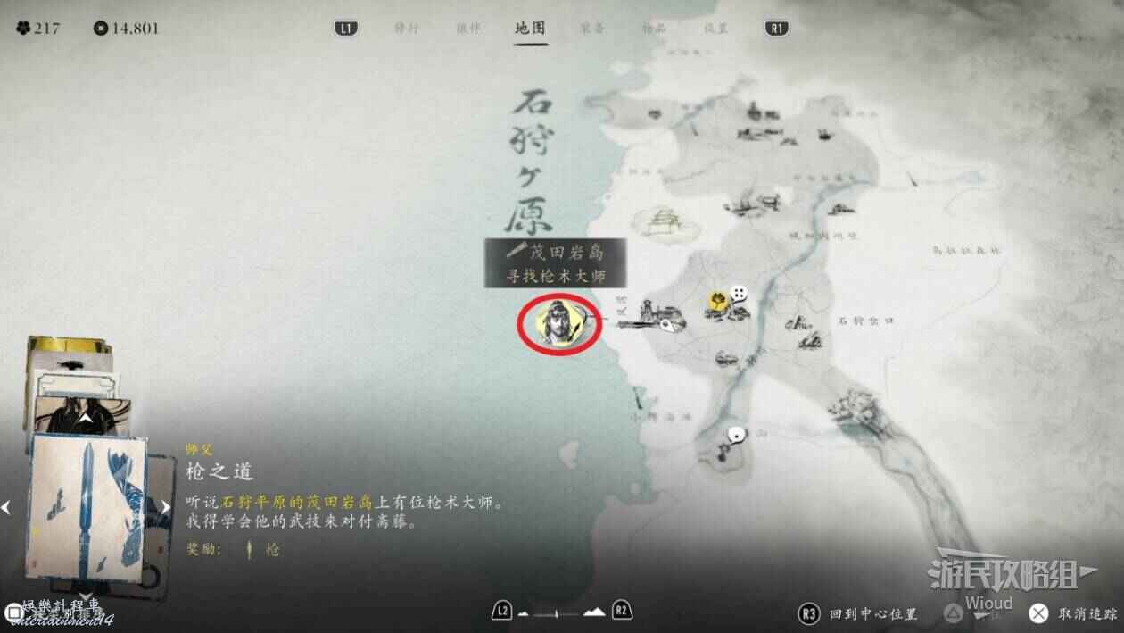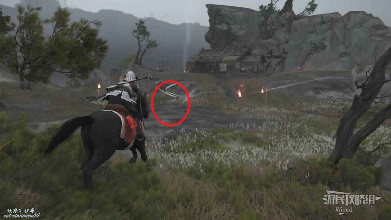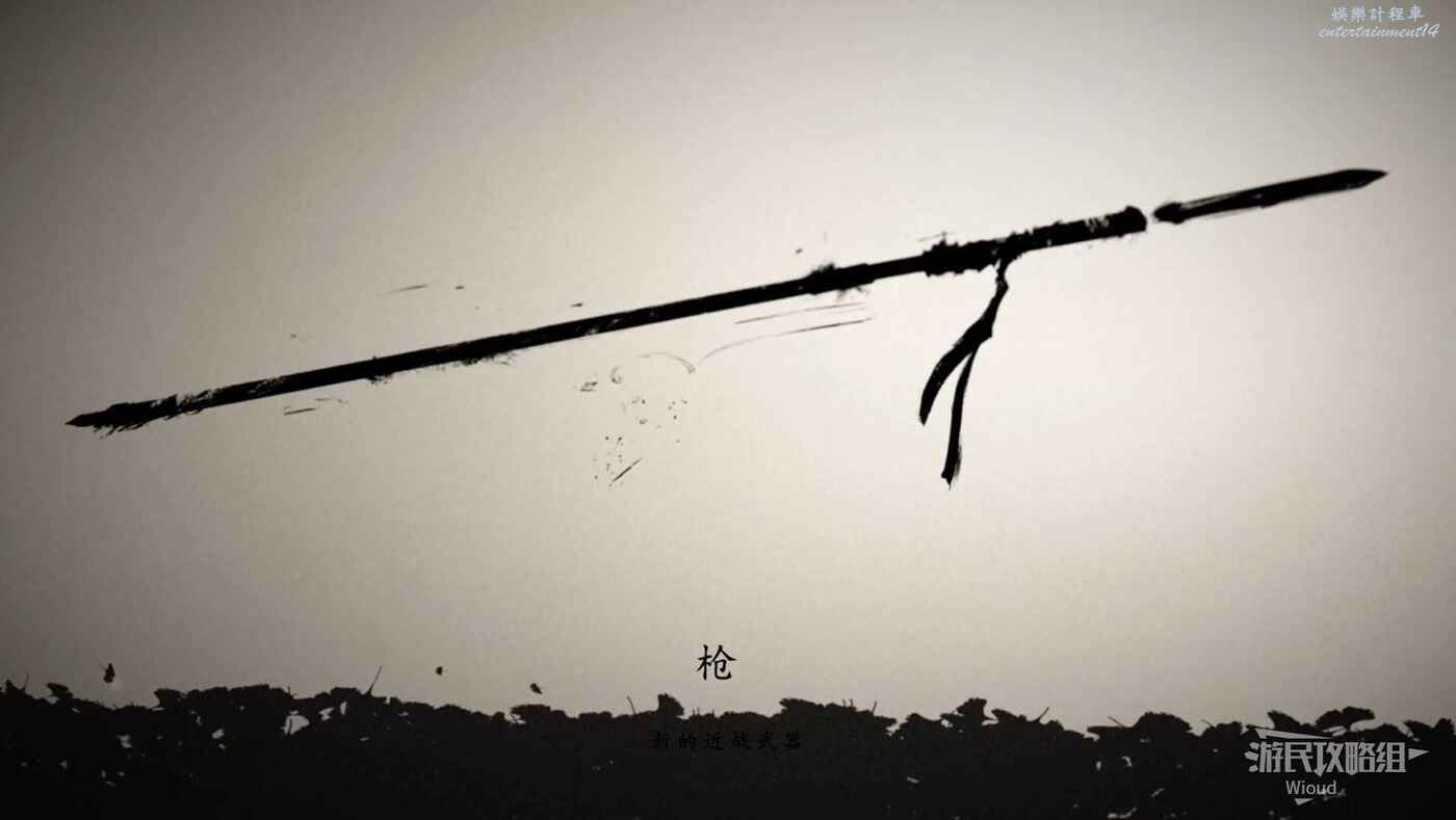 走到小島往裡看,拾取房屋前面插在地上的長槍觸發劇情,和突然出現的長槍師傅戰鬥並取得勝利。