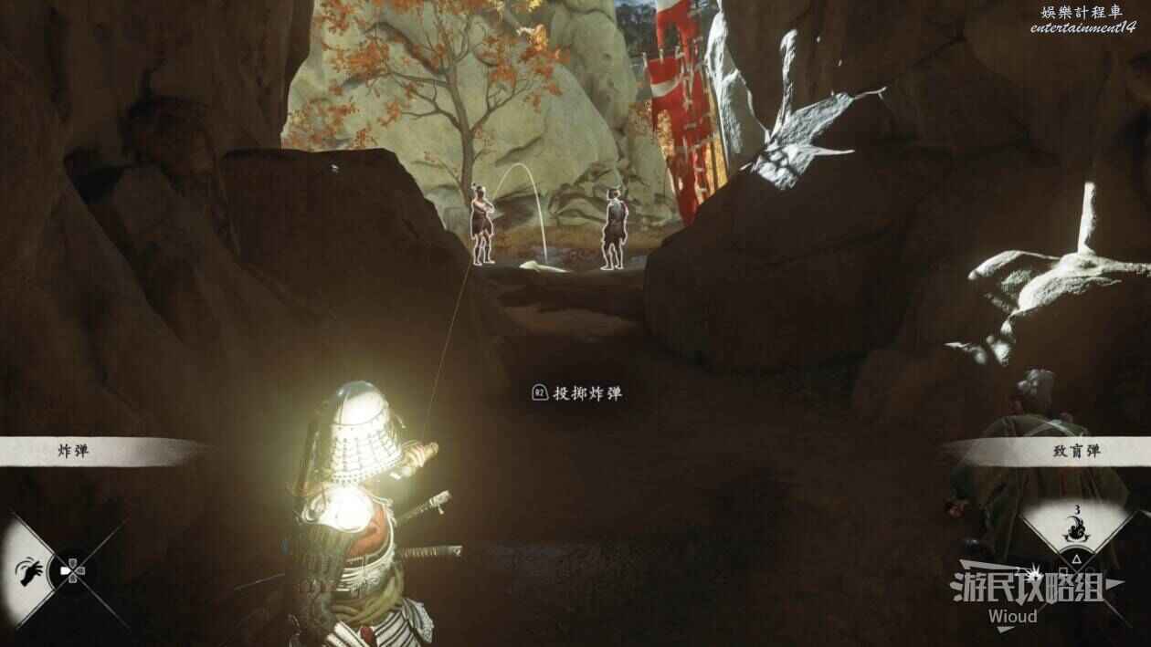 跟著NPC走出洞穴,朝門口的敵人扔致盲彈,出去幹掉他們。