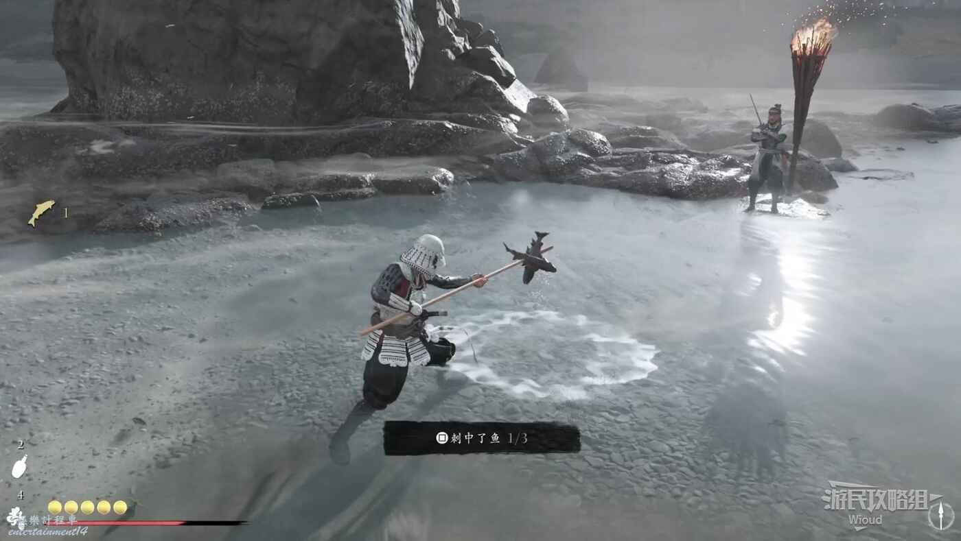 第一次刺魚只需要刺中一條就會觸發劇情,第二次過來會更好刺一點,刺到三條魚觸發劇情。