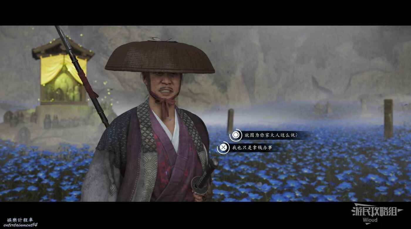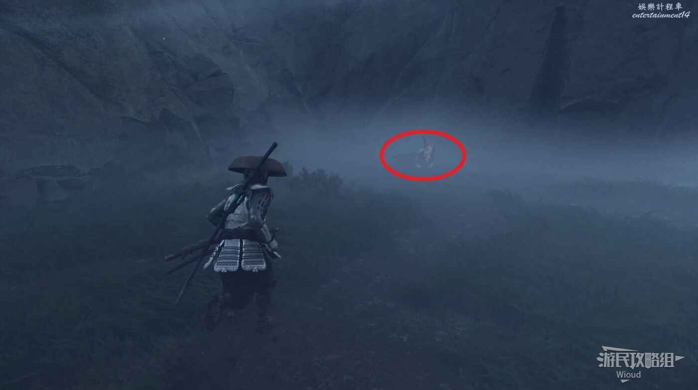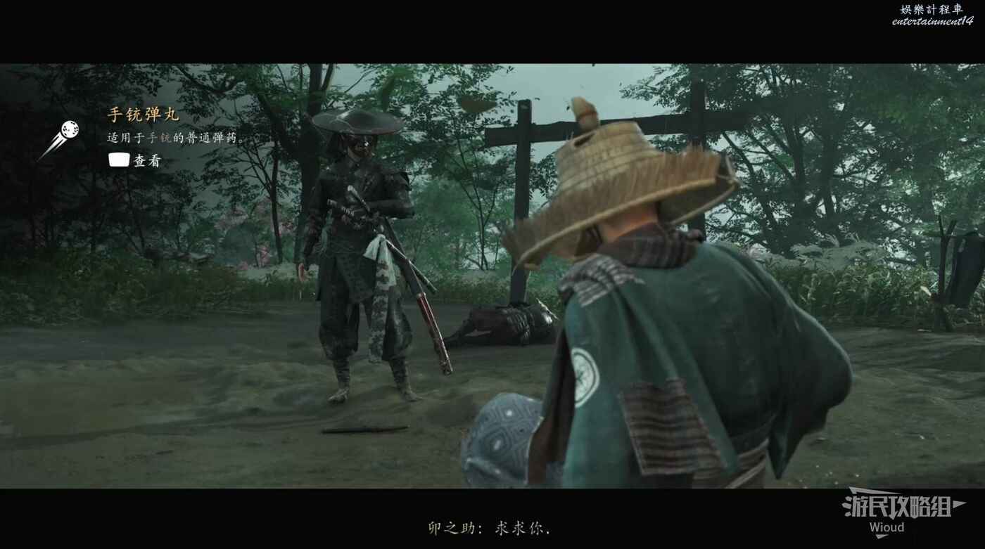 目的地沿著樓梯進入墓園,穿過一道門和右邊屍體互動,此時一個同樣接取懸賞的浪人進來和我們戰鬥。