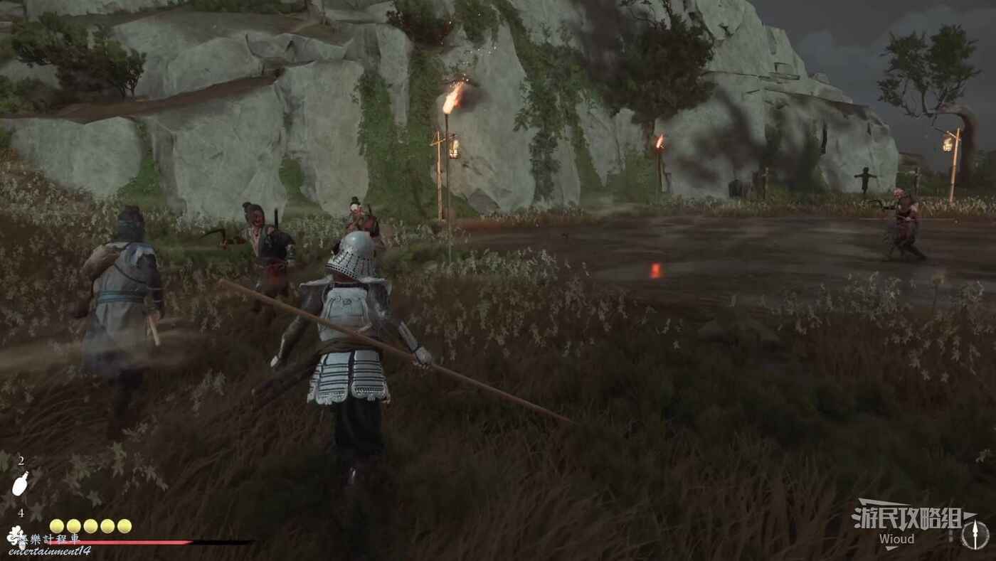 夜晚跟著十兵衛潛入城池前方,沿路幹掉敵人。