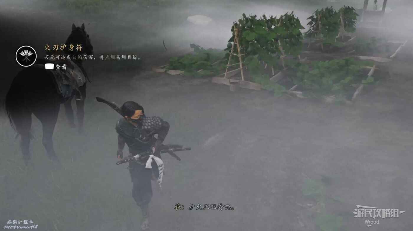 打完所有農場,觸發夜晚露營的劇情,最後獲得【火刃護身符】。
