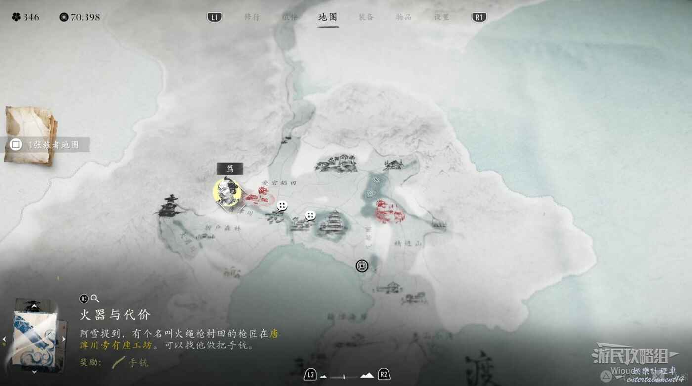 完事阿雪也來到了家裡,和十兵衛碰面後,幾人發生口角,過完劇情往地圖左下角的指引處移動。