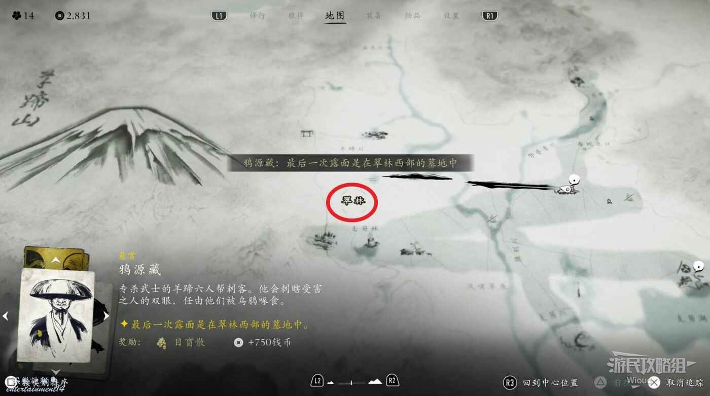 地圖選擇左下角選擇對應懸賞卡片,移動到客棧左側的【翠林】。