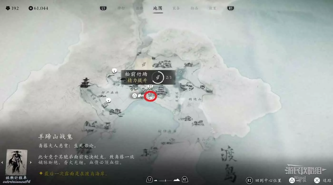 位置如下圖所示,傳送到【松前居所】直走再右拐,在院子裡找到這個竹場。
