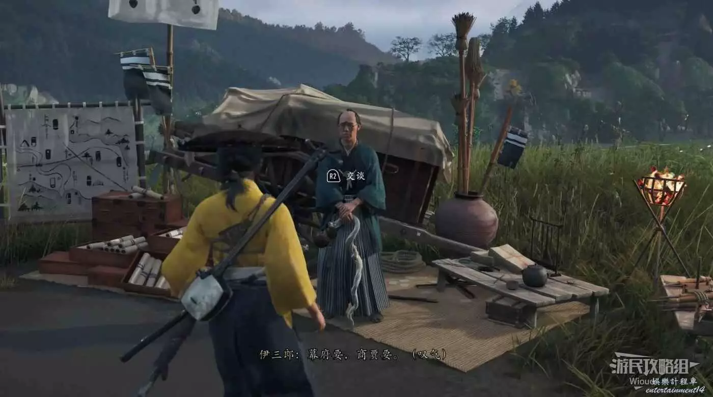 完事跟著僧人出去遭遇一波敵人,最後回到【富士見客棧】和買地圖的【伊三郎】對話結束這個任務。