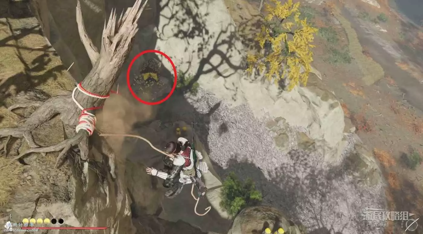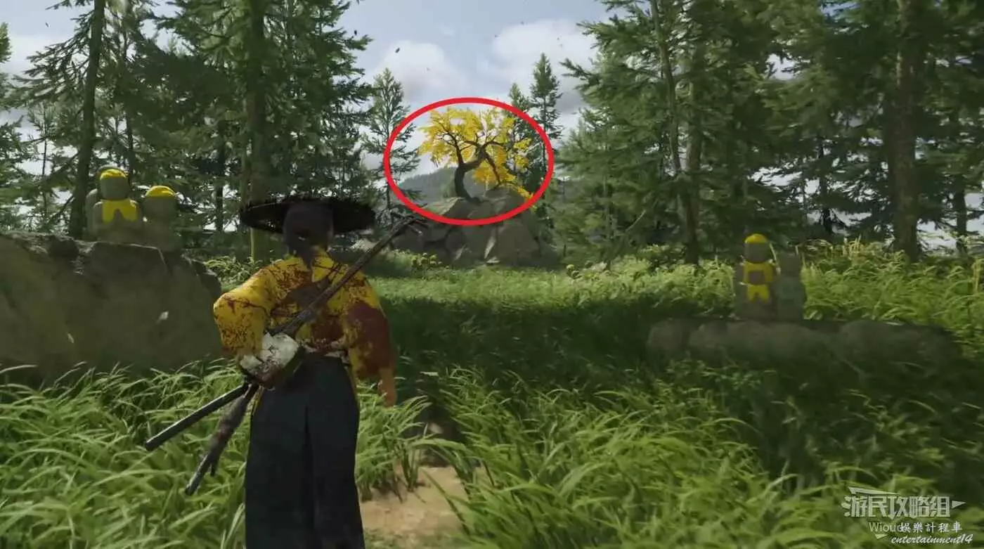 移動到目的地,可以在一個山丘看到祭壇黃樹,從兩側繞下去即可。