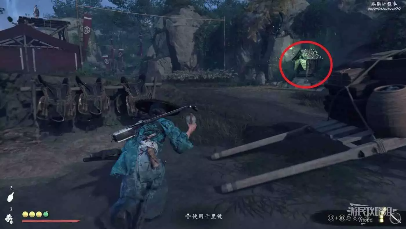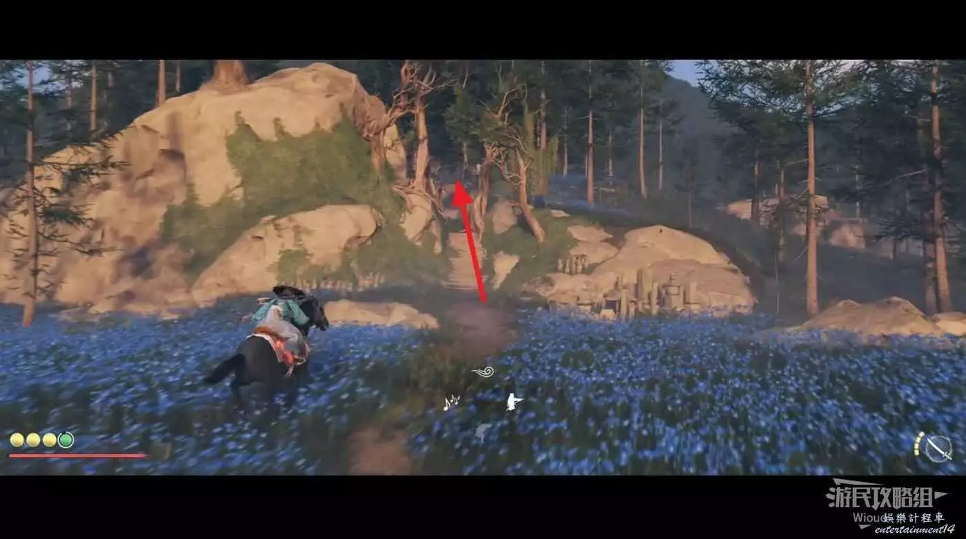到達位置注意下圖紅圈所示的竹林,直接用武器砍掉竹子進去就是祭壇。
