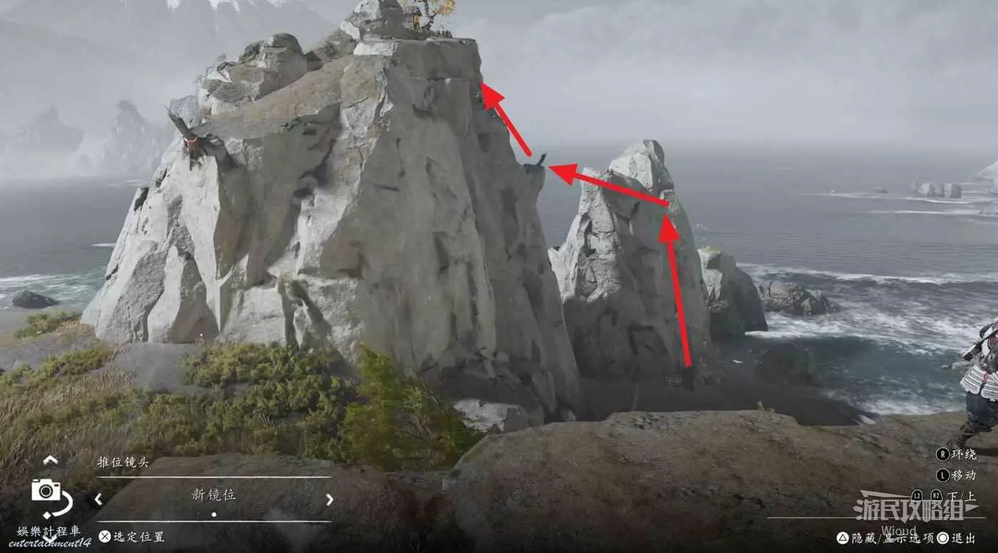 沿著左側海岸邊走,到達目的地直接通過右側山壁上的攀附節點跳到祭壇處。