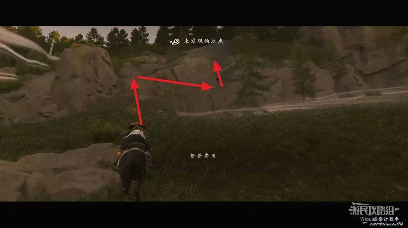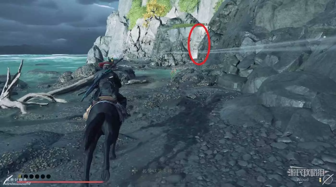 移動到目的地,前面是無法攀爬的高台,面對高台往左走。