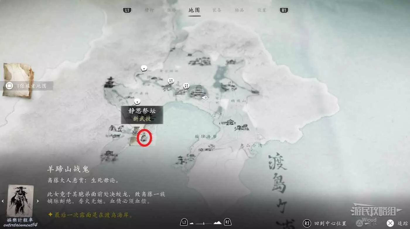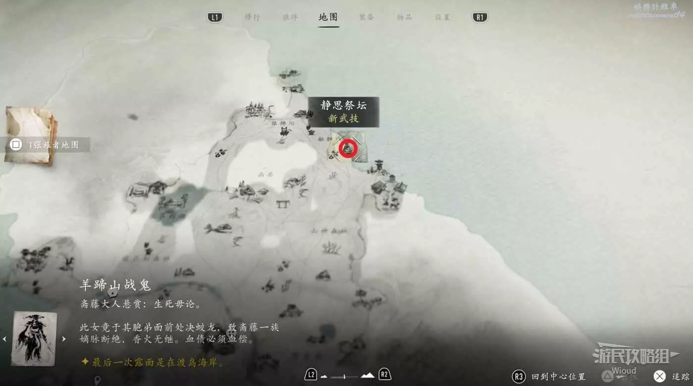 祭壇本身沒有被藏著,到達目的地就能看到,過去把守護祭壇的浪人幹掉即可啟動祭壇。