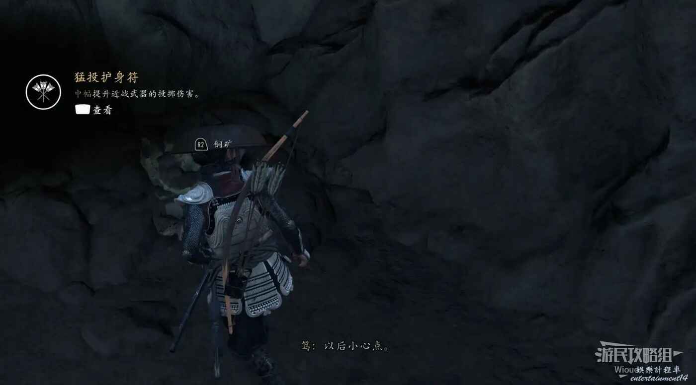 然後跟著NPC拉開牆縫,和裡面的神社互動獲得【猛投護身符】。