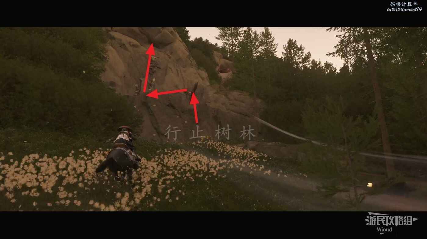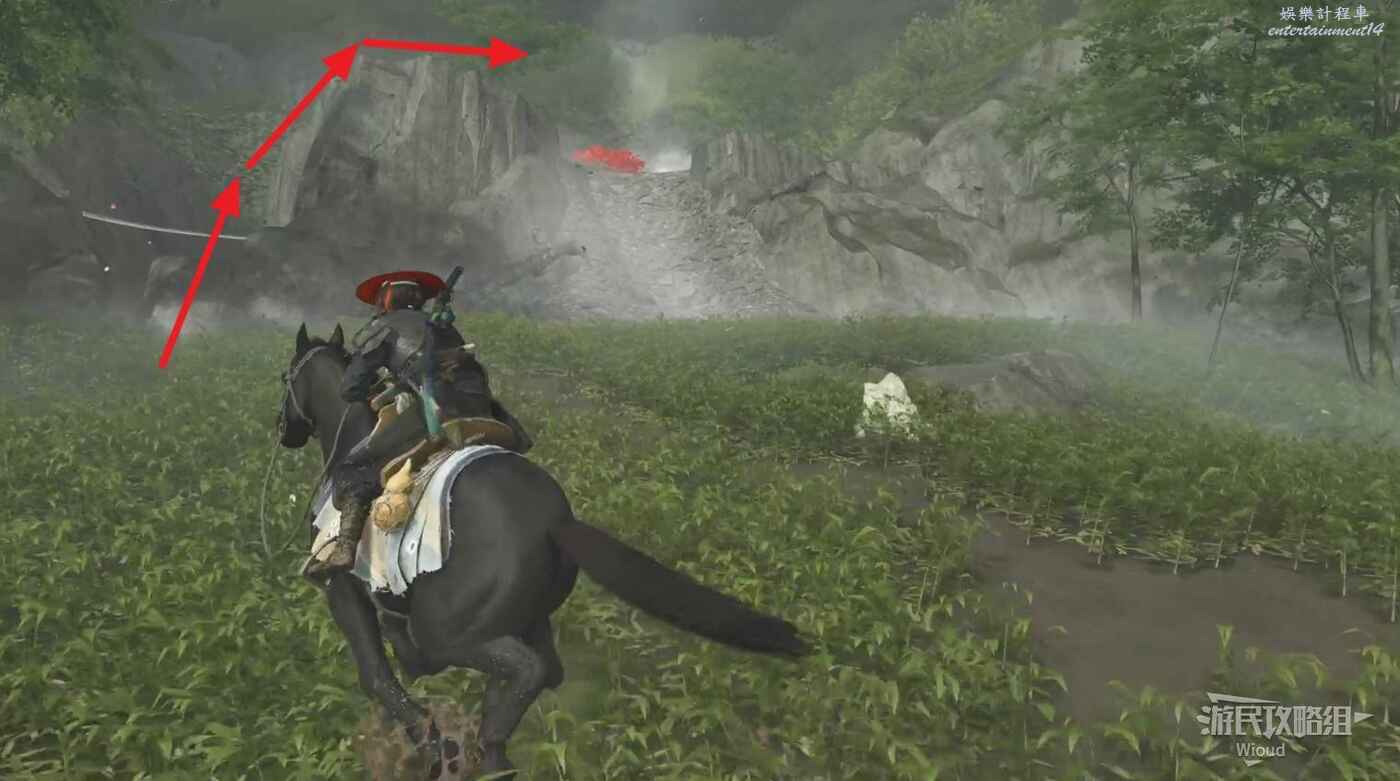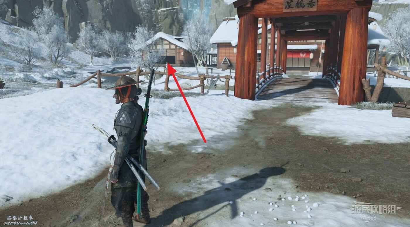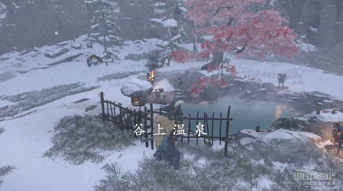 目的地可以發現溫泉在坡上,面對下坡沿著左側的跑酷點爬到頂部即可找到溫泉。