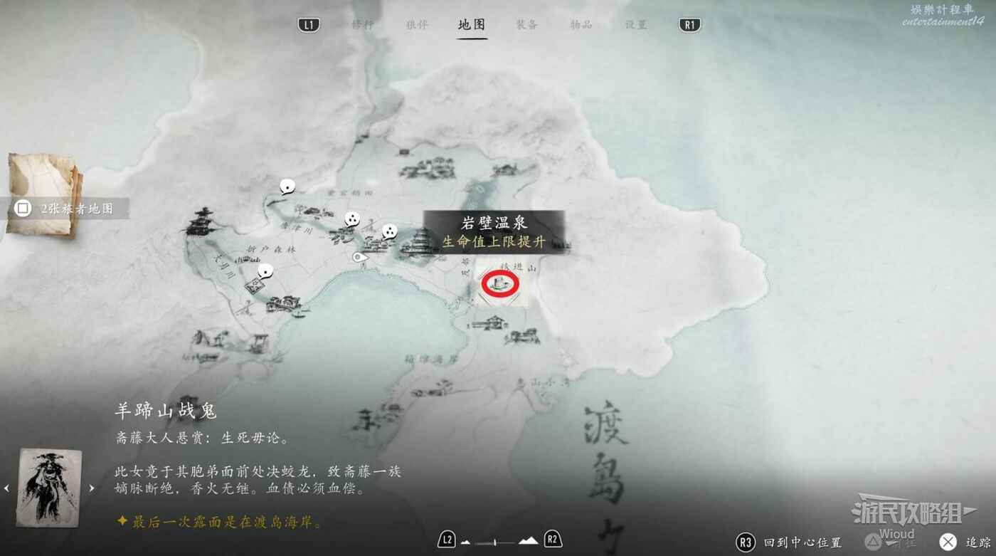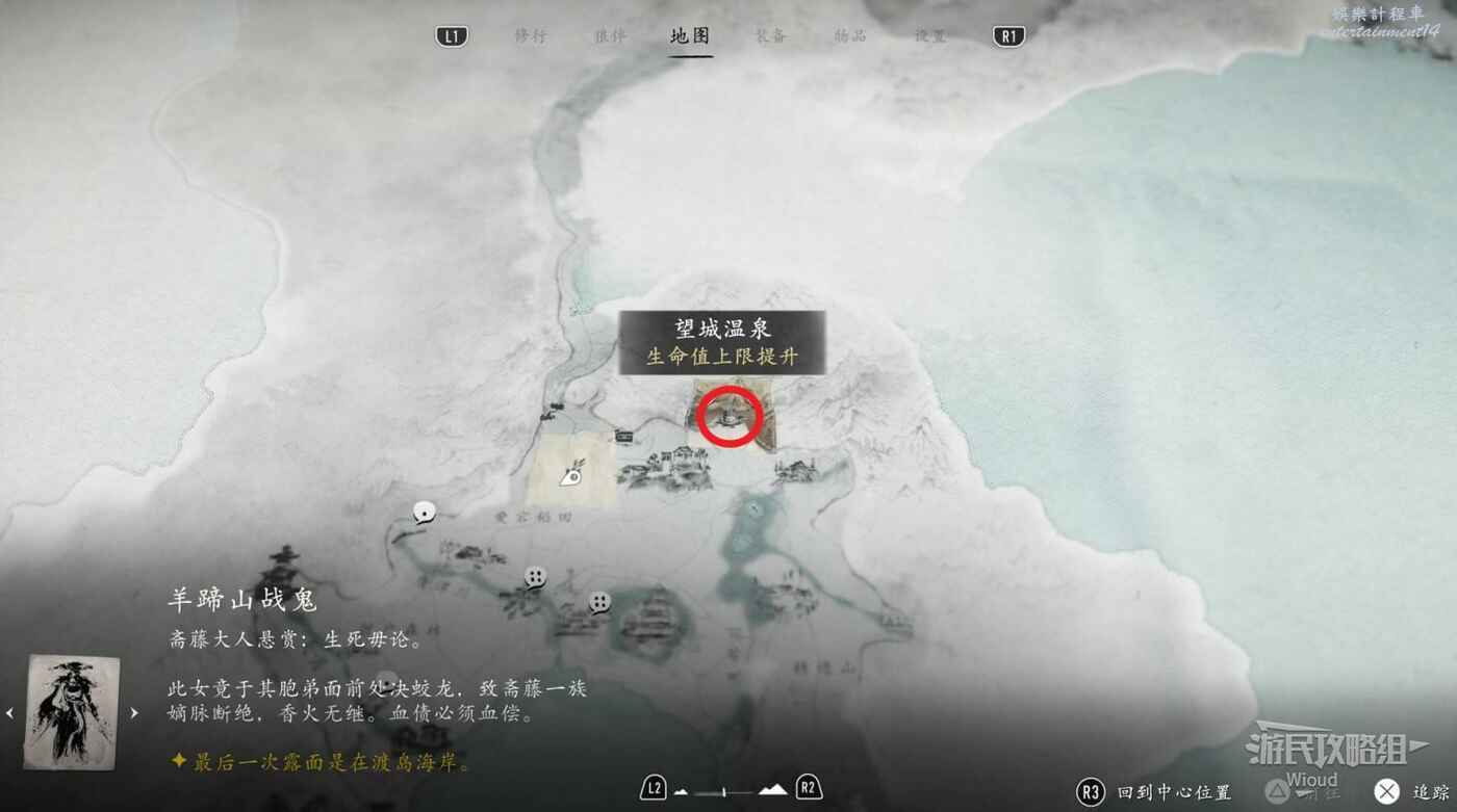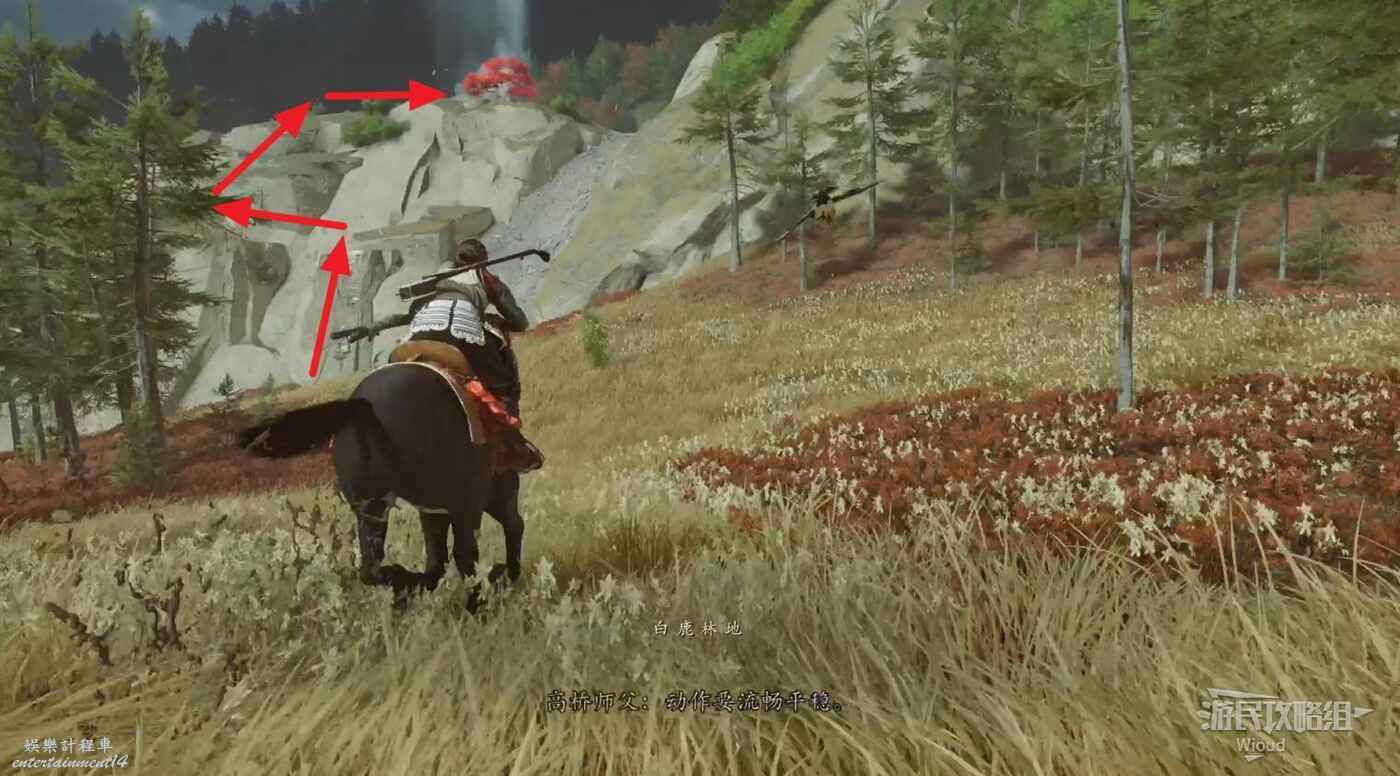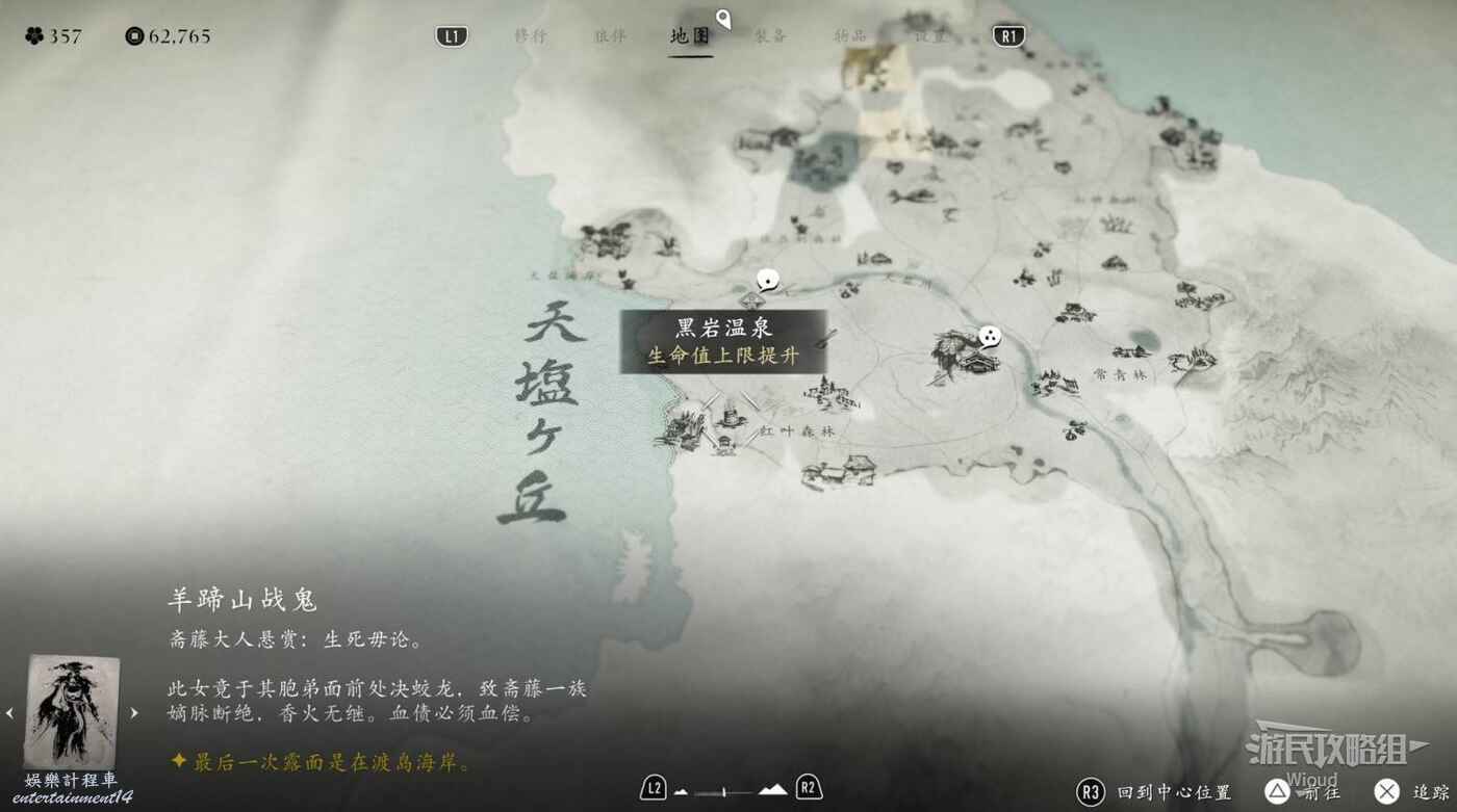 目的地可以發現溫泉在坡上,面對下坡沿著左側的跑酷點爬到頂部即可找到溫泉。