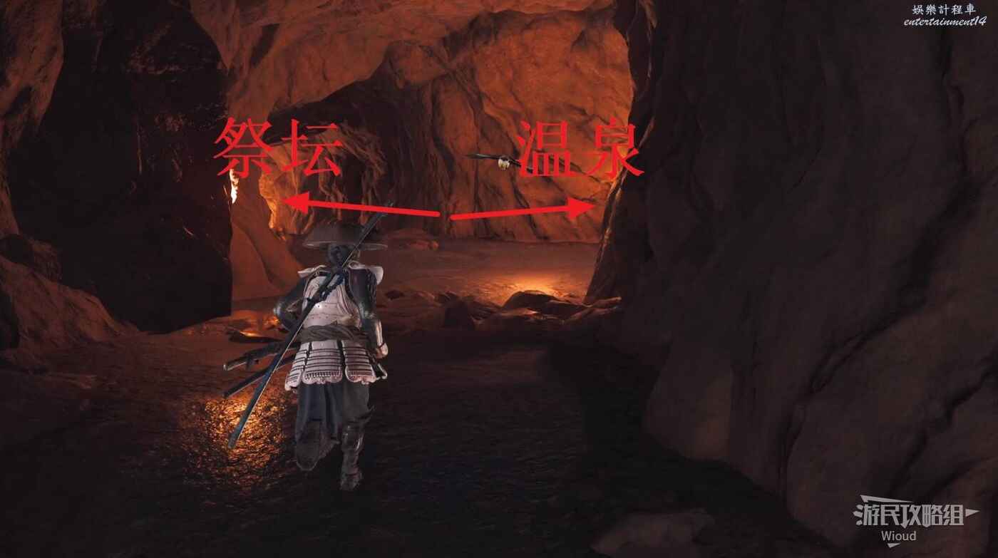 隧道裡不遠處遇到個岔路,往左走是祭壇,往右走是溫泉。