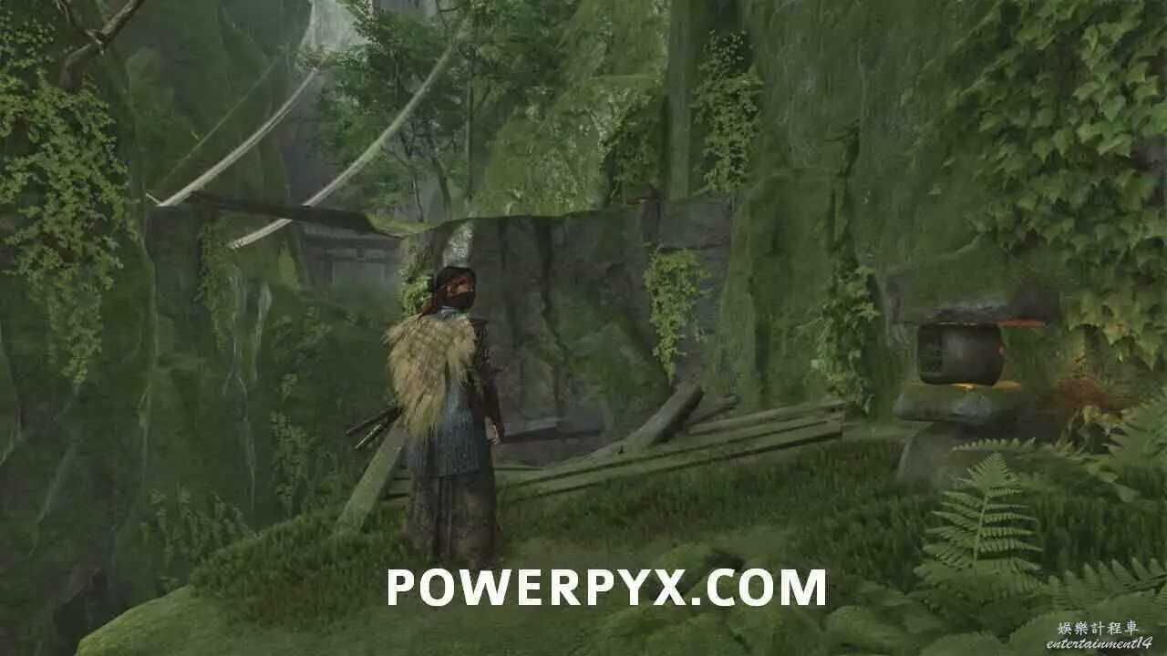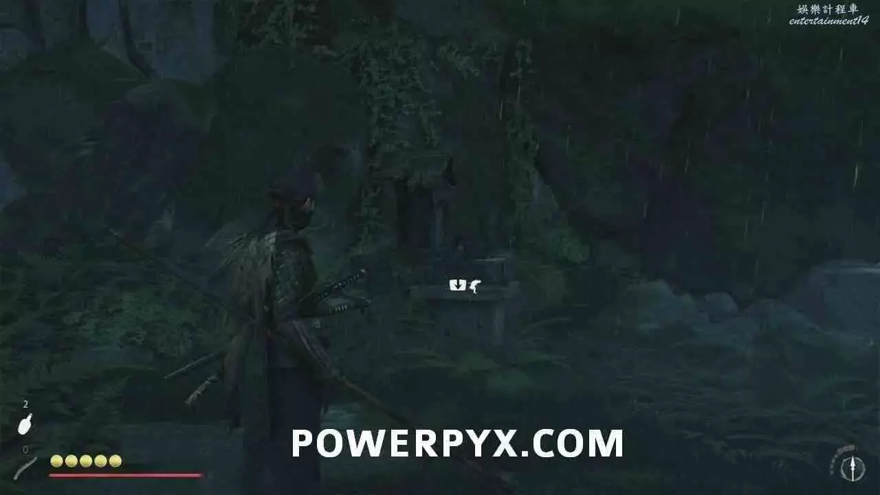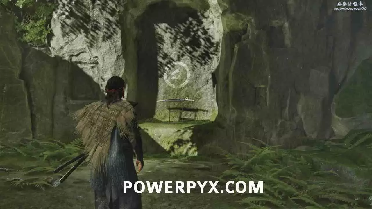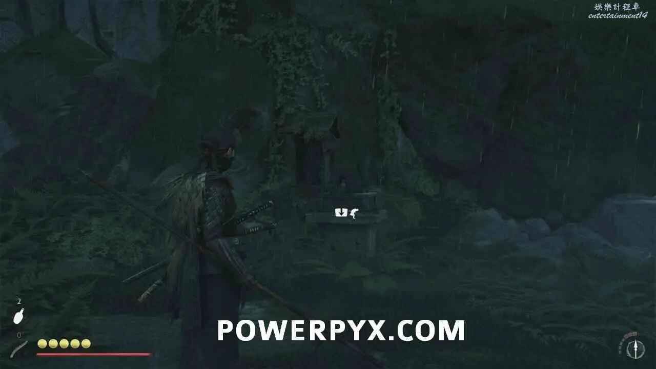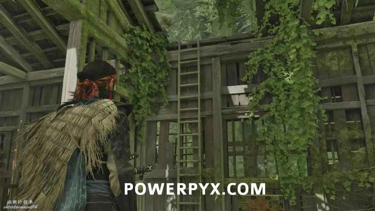 從岩壁跳到鉤索點,蕩到對岸後沿路往前走到【遺忘忍家】。在小屋裡可以看到屬於前作對馬島之魂主角境井仁的許多回憶。