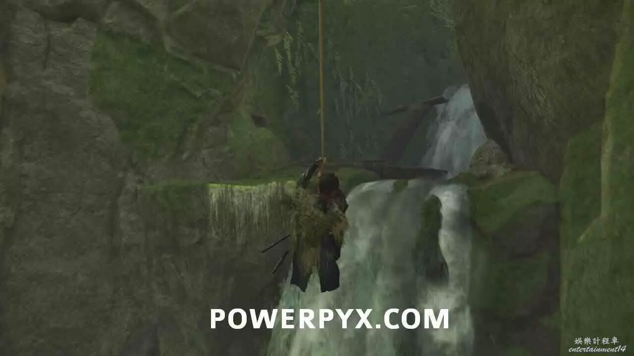 利用鉤索到達瀑布對岸。