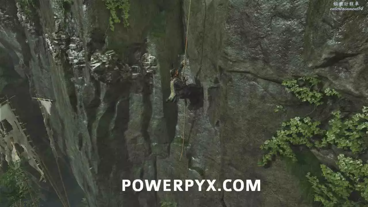 沿繩索下滑至左側岩壁。