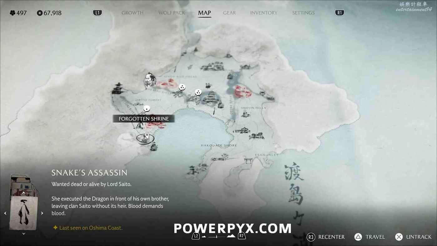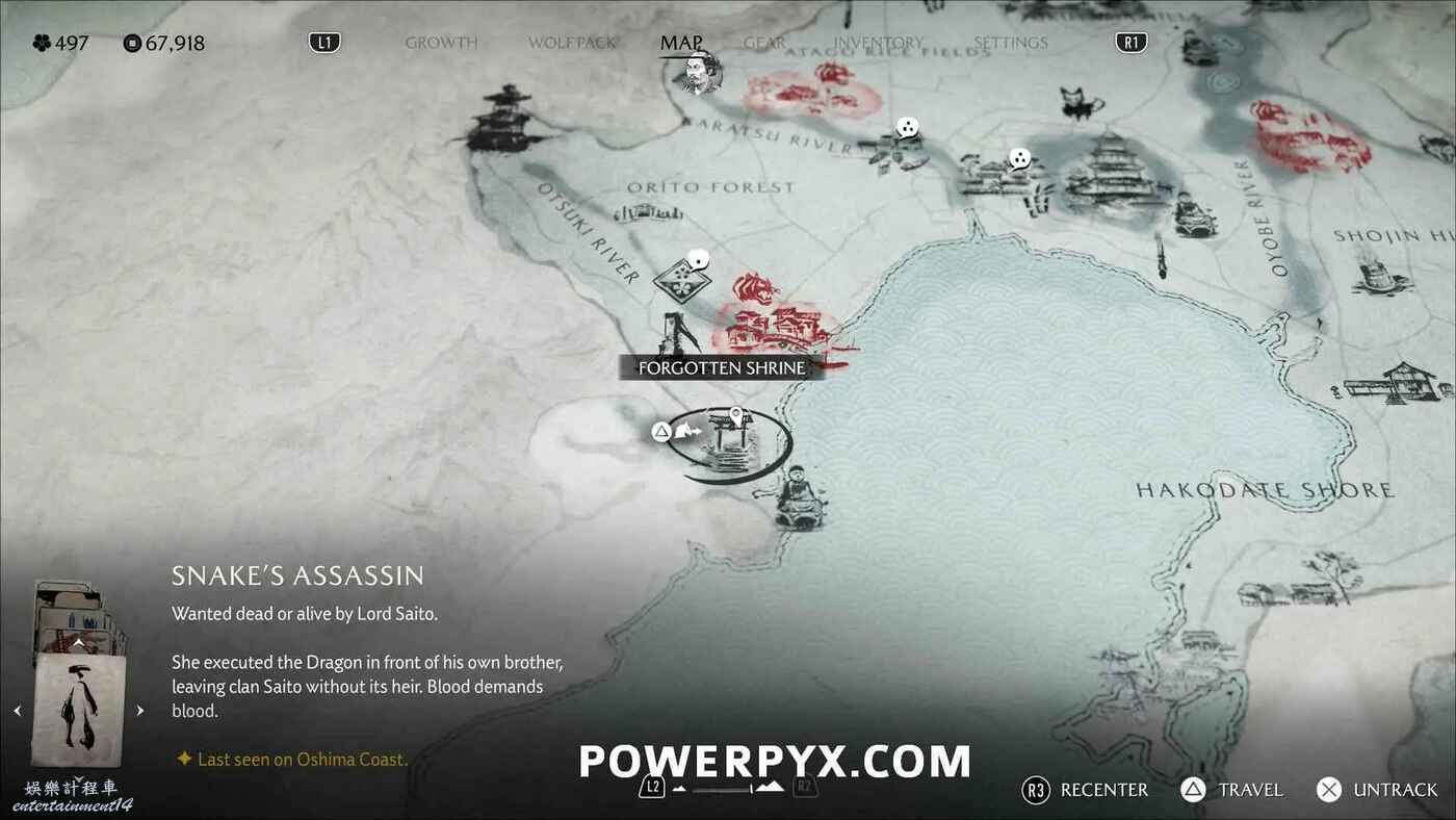 前往渡島海岸西南部的遺忘神社即可觸發任務,與說書人對話開啟傳說。