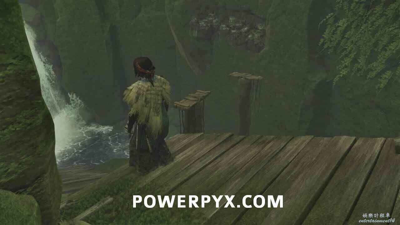 看完過場動畫後,被九尾伏擊,消滅敵人後離開洞穴,跳入下方水域。