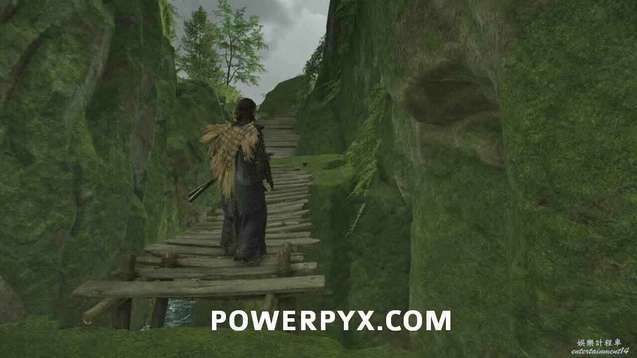 右轉進入房屋,爬梯子到屋頂,再跳到岩壁處往上爬。