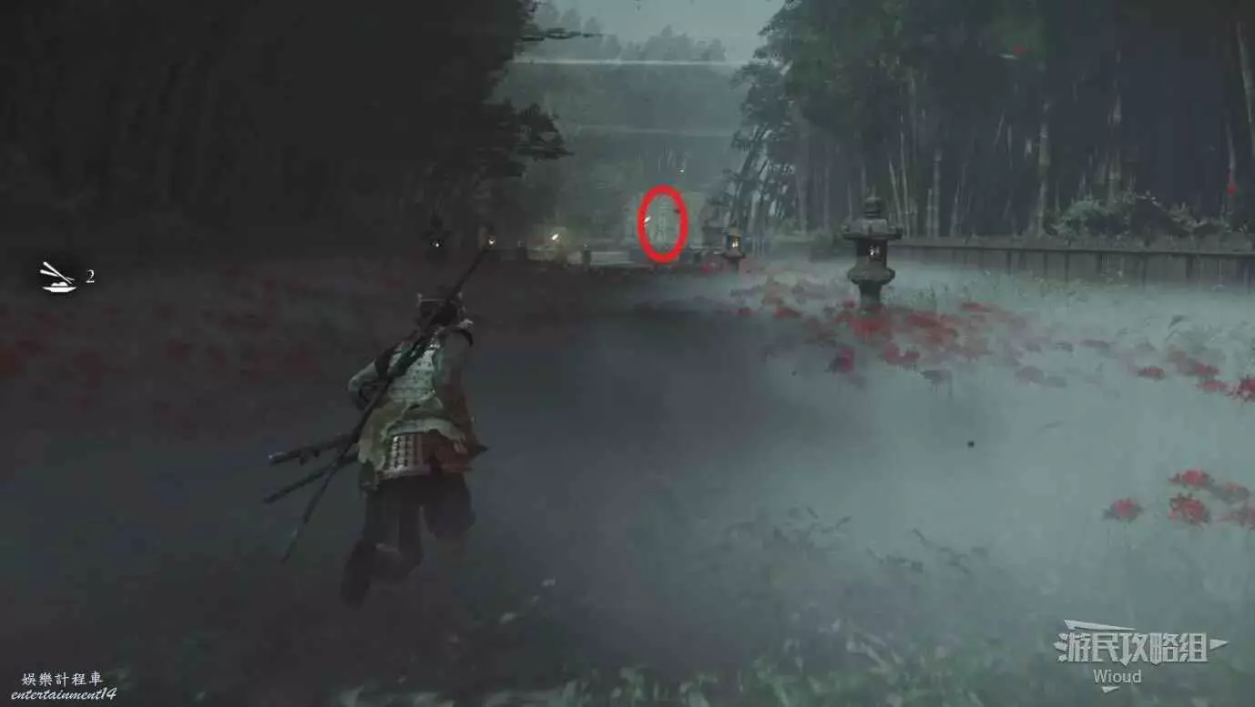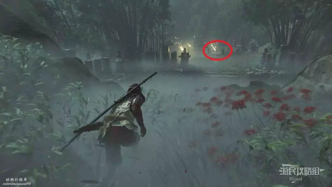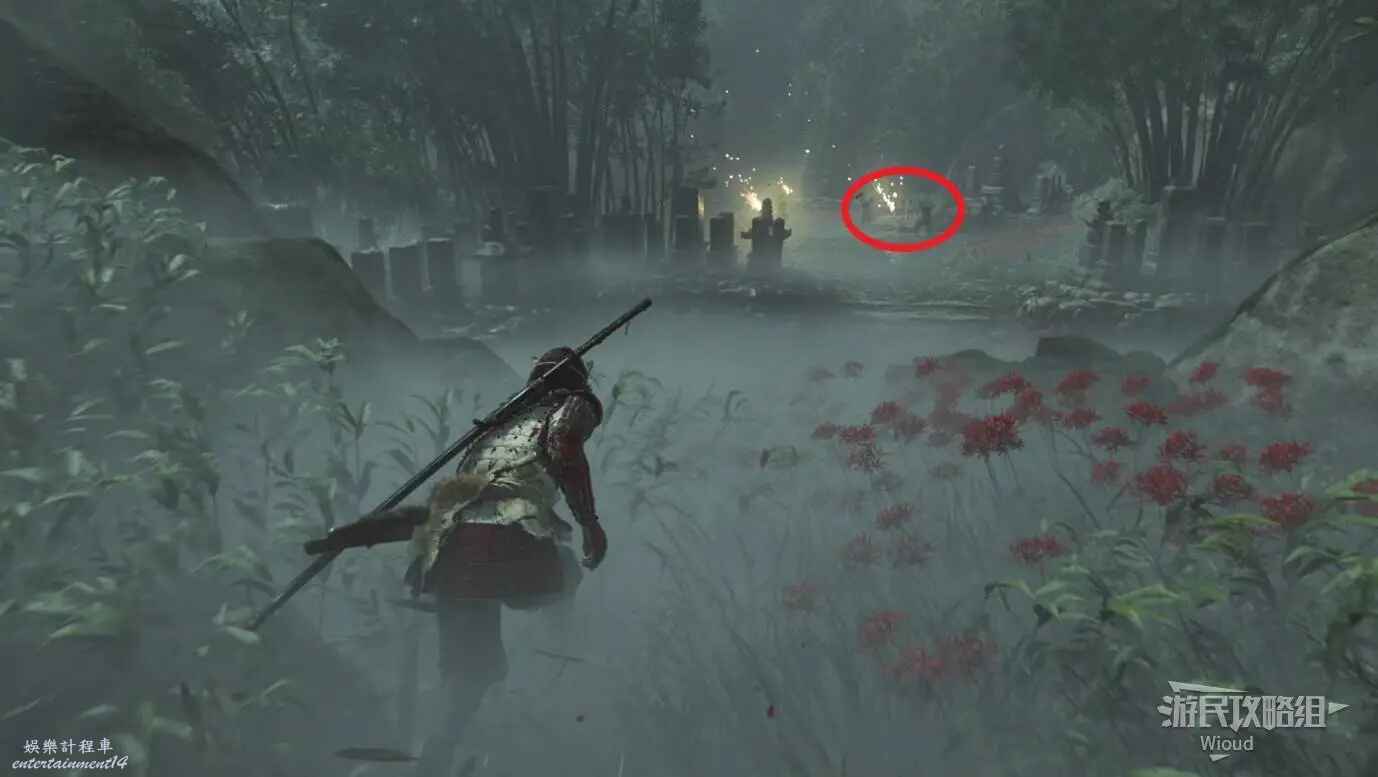 跟著長彼岸花的路走,重複幾次即可完成解謎,最後在竹場中間可拾取【刻印鑰匙三】。