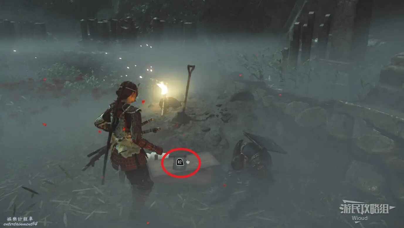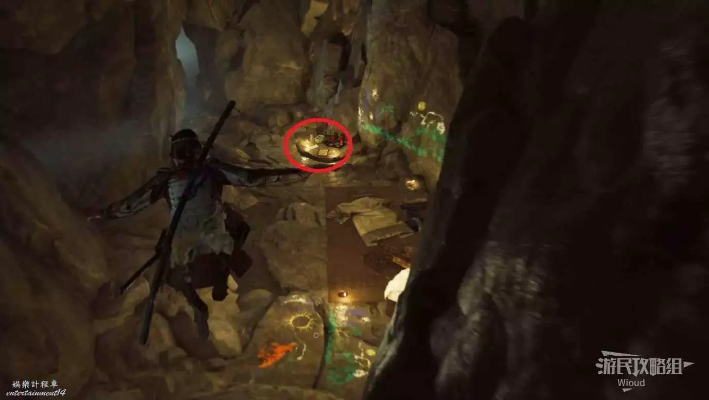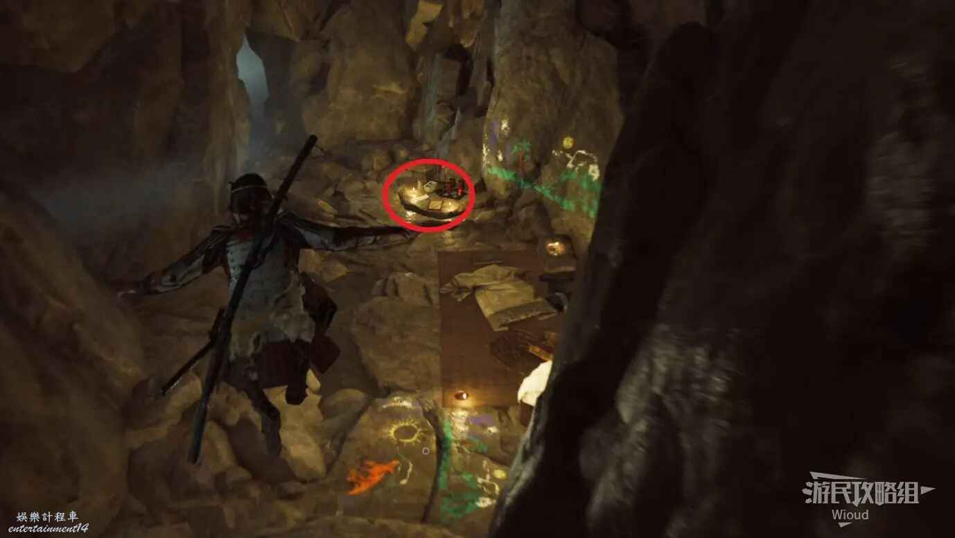 看到第二波盜墓賊時靠近觸發劇情,彼岸花大將會把他們直接帶走,我們只需要走到下圖所示位置和信互動獲得【刻印鑰匙二】。