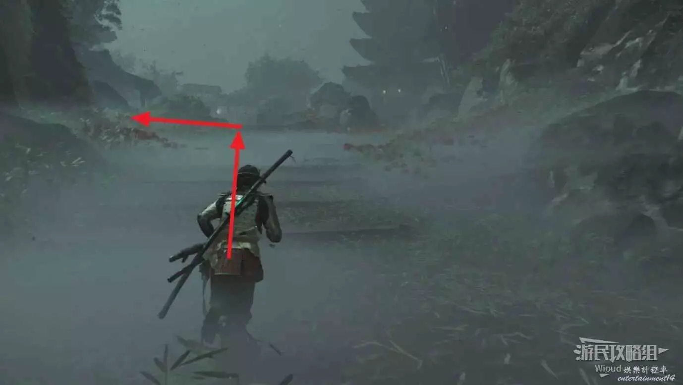 完事往目標塔樓右邊走,不遠處遇到一夥盜墓賊,擊敗他們後爬樓梯沿路走。